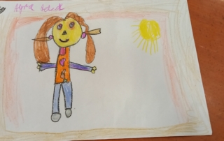 ‘This is Elly…I made her up.She’s sleeping on the ground, she’s sleeping on the grass. She has ice cream on her ears…AND donuts…and spaghetti hair. I liked ‘Witches Fingers’.