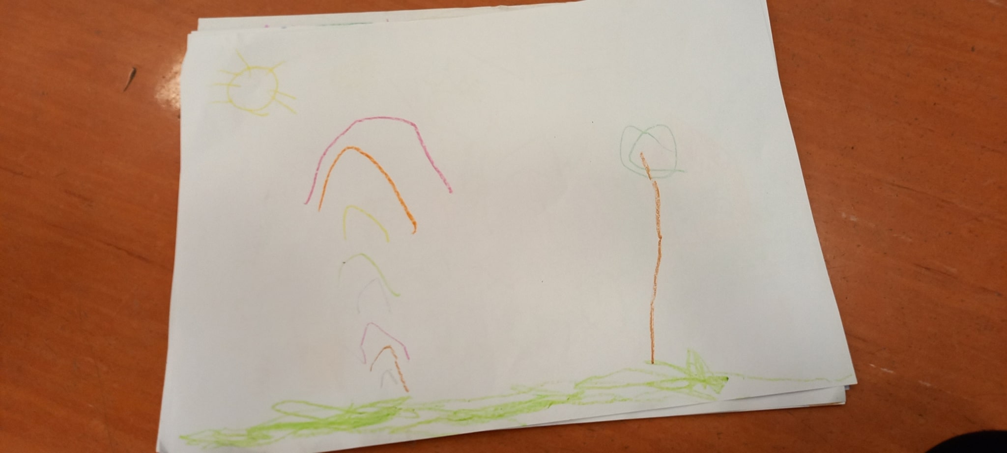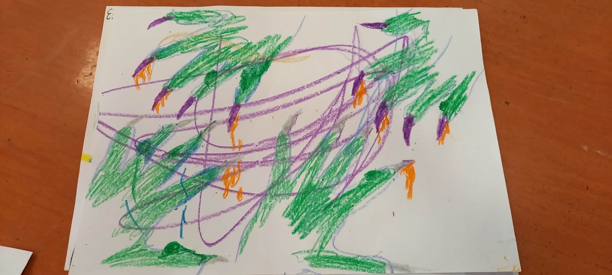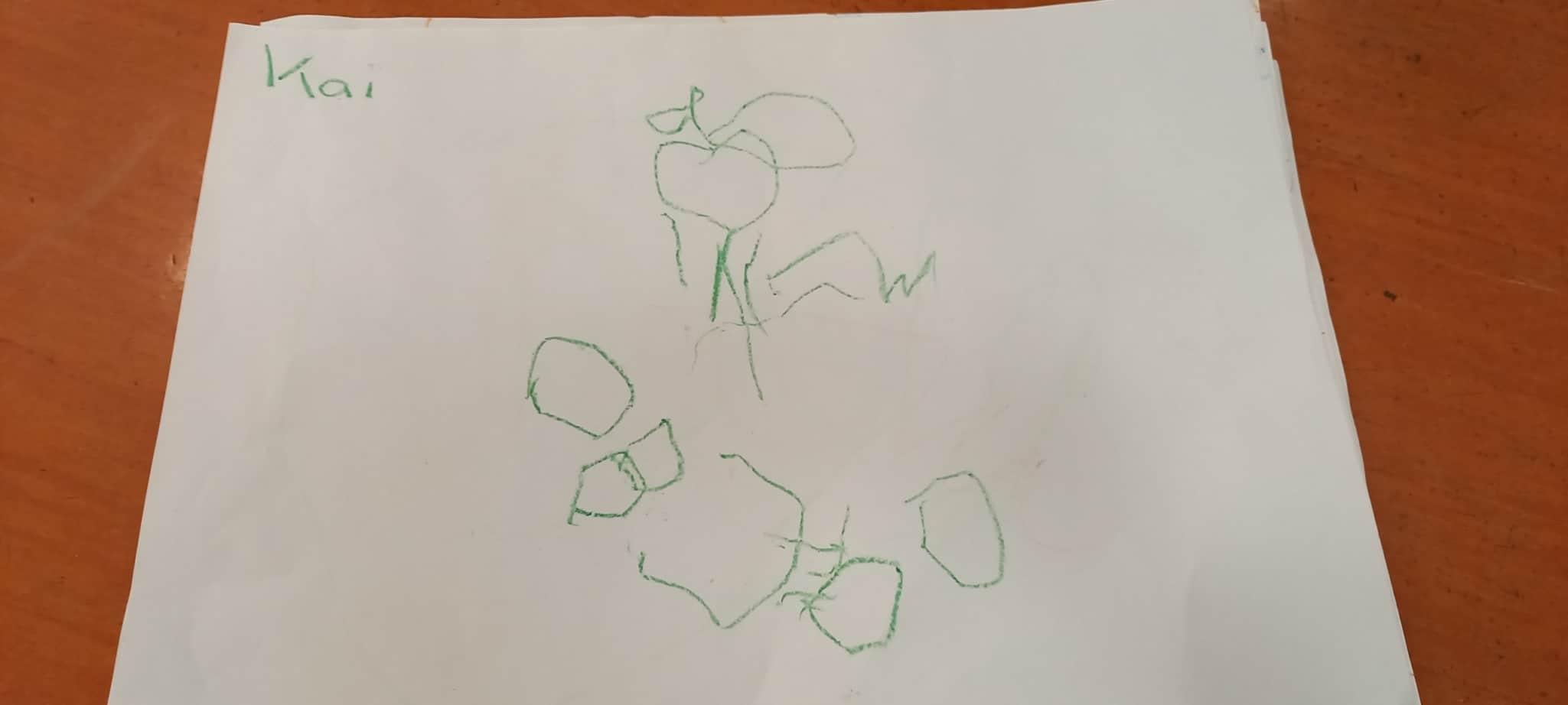Ameerah made up a new verse for Jelly on His Head about Eve with ketchup on her face! And during the Licketyspit Art Gallery we found out that Kian knows so much about animals! He drew a toucan which is a kind of bird from the Tropics and also a pair of meerkats. Levi decided he wanted to make a paper airplane with his drawing to give to Kai.