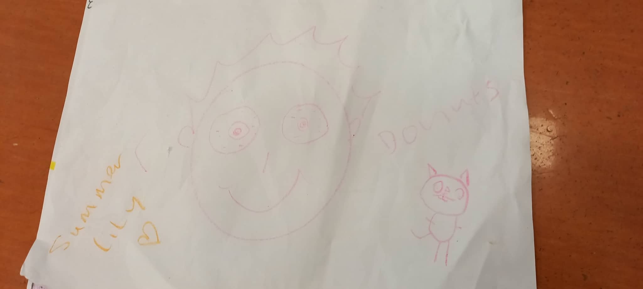 ‘Mummy draw the cat. I draw donuts, I draw my name and that’s my cat’s name.’