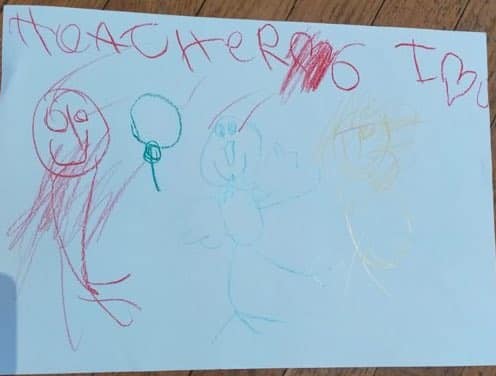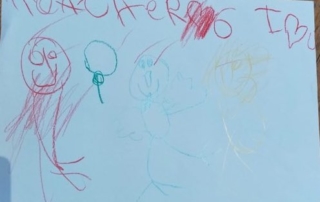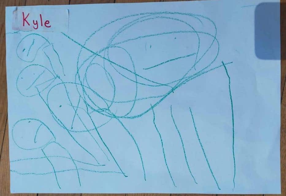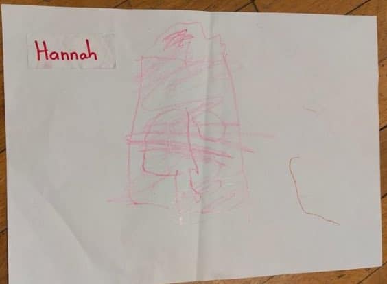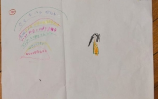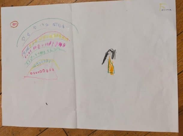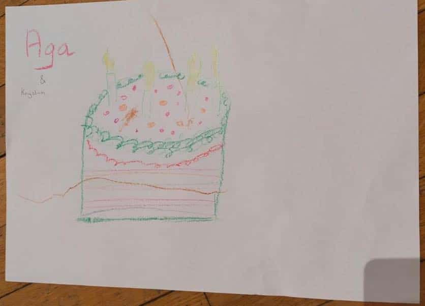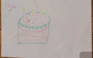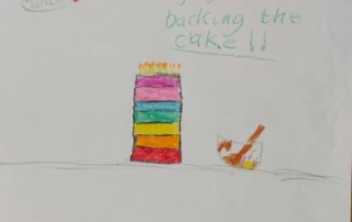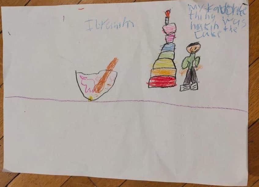 ‘I drawed a rainbow cake. I put in unicorn chocolate. That’s me with a smiley face. Baking cake was favourite part of today.’