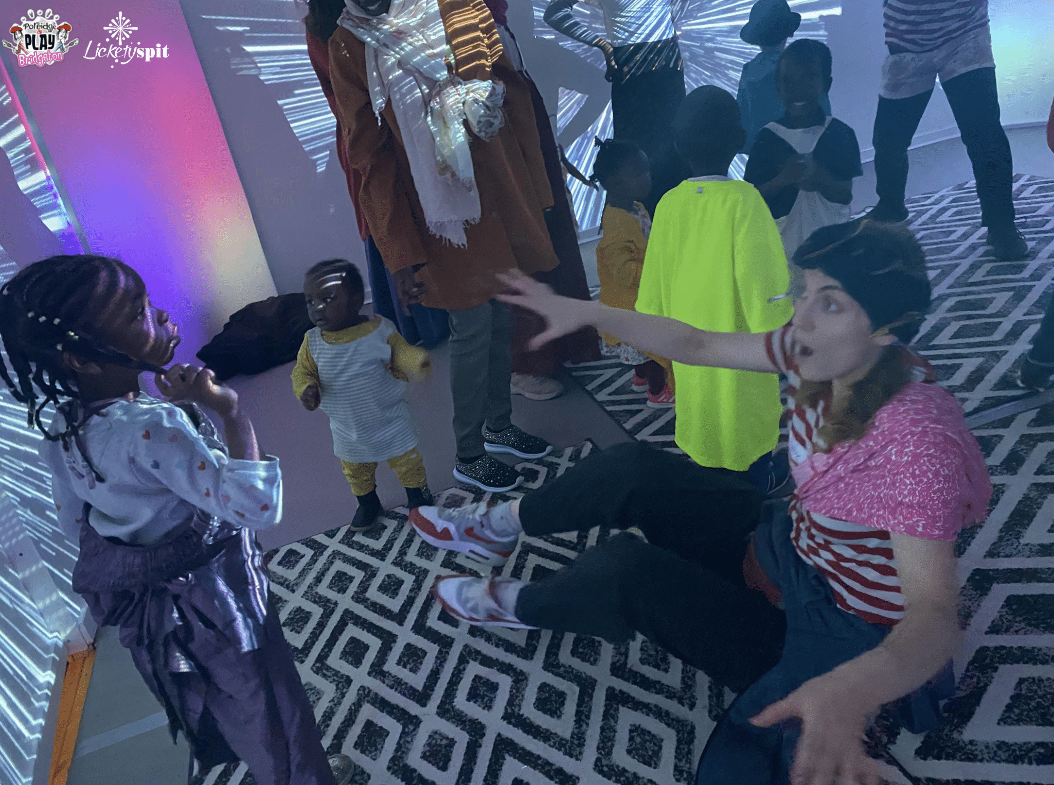 We also added leaves, sugar and plenty of fruit. After we’d baked our delicious World Cake we just had to get dressed up as explorers! The Magic Ball then took us on a memorable adventure to space and back. We got to go to lots of festivals from around the world and discover so many different ways to celebrate. Saba recognised and initiated a lot of chat about the festivals throughout, knowing about a few of the celebrations. Latifa thought she saw somewhere familiar, thinking some people looked just like her and her Grandparents! The Ceilidh dancing was great fun, and everyone in the room was really excited by it. William said, ‘I liked the dream machine. I liked how we got to go to different places!’ Soon we saw the Magic Ball floating in space, so we knew it was time to head back for our picnic!