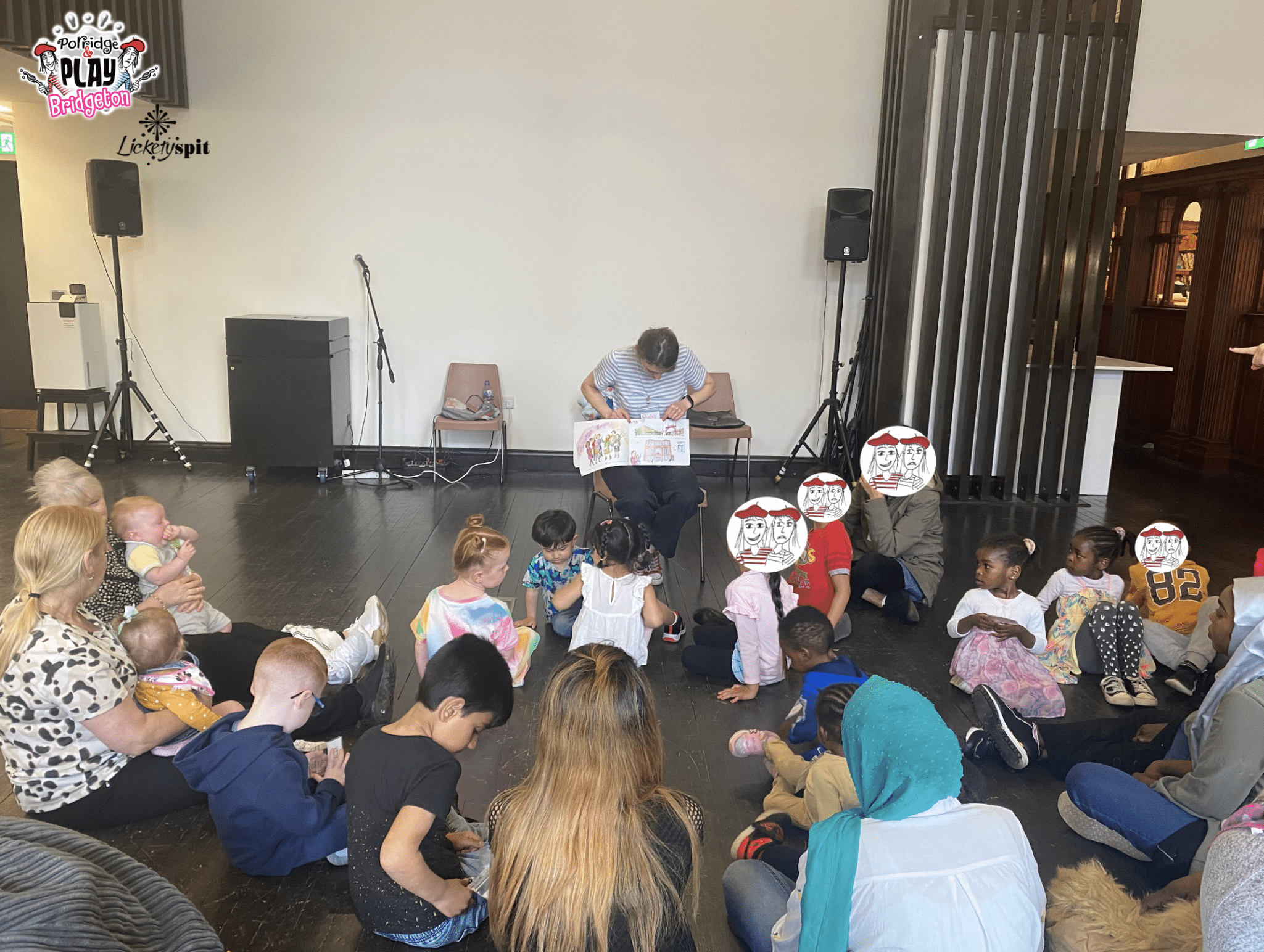 Everyone was so excited to see the amazing Glasgow Women’s Library and take part in their first Bookplay! This is a type of Storyplay we do here at Licketyspit. Alan & Rayna helped so much at the start by giving everyone their name badges, Moira helped move the blocks away and everyone came together to play. We began by being as Big as a… Bear! There were some fabulous foxy tails all wagging in excitement. Soon we met some wonderful animals in Funky Chicken! We even played a new game called Old Roger is Dead and everyone’s actions were so expressive, it was really groovy!