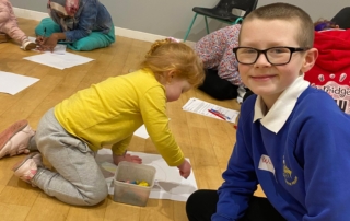 We also got to use our lug listeners at the end for our Licketyspit Art Gallery! Effie took us around the room and we got to seem some truly wonderful drawings from the session. It was great to see families from this taster at our Bridgeton Launch which happened on Friday 11th February.