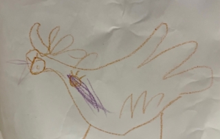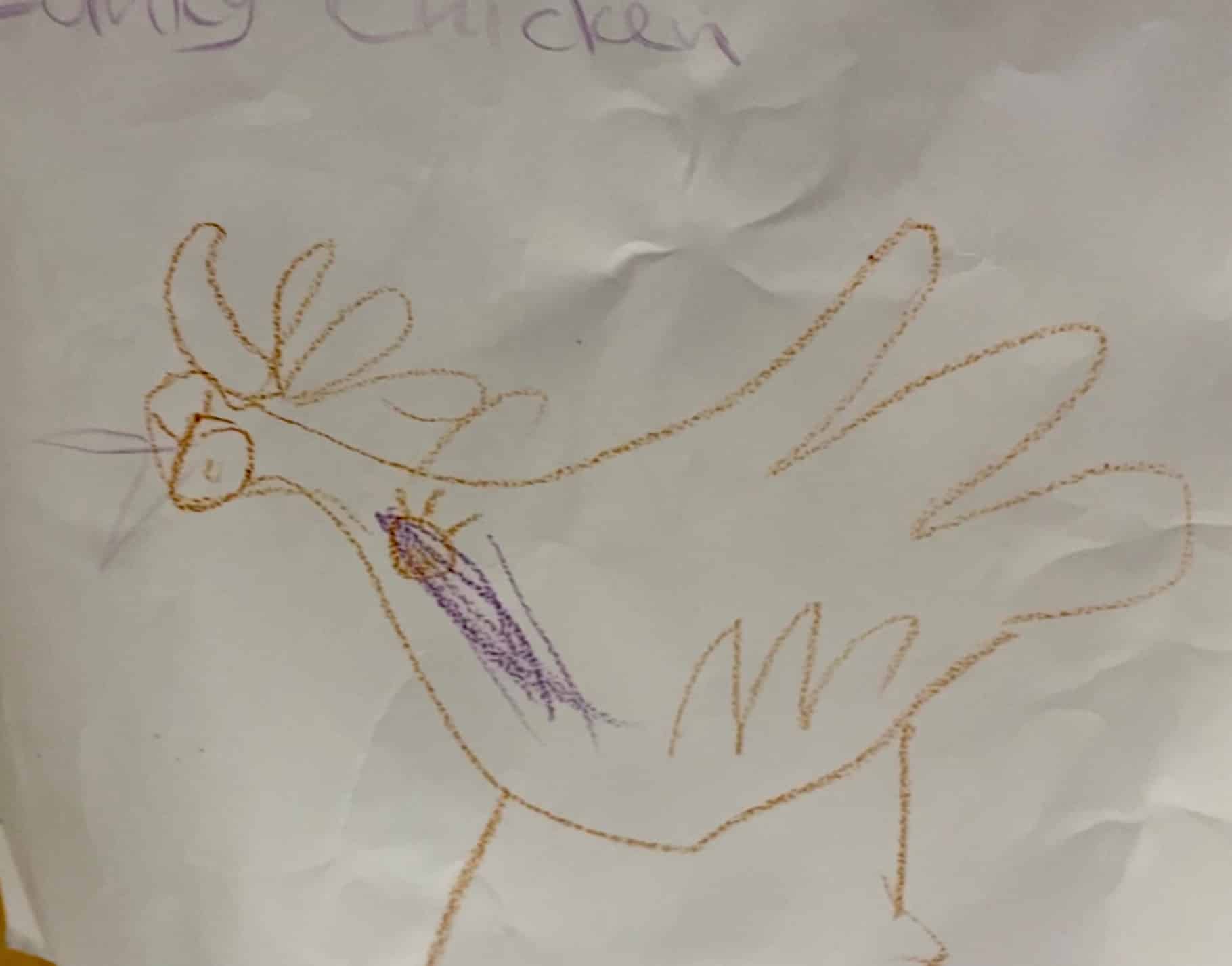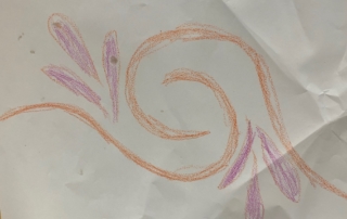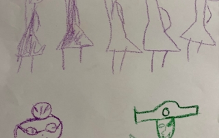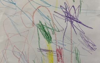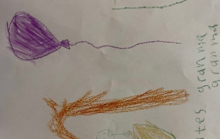 It was so wonderful to be able to play in the amazing outdoor space that Church House has to offer. It gave us so much space to fly in our balloons and so much deck to scrub for Pirate Captain Marvellous! William doing the Funky Chicken was brilliant! And Pirate Captain Alan told us a whole story about his pirate having a fight and putting him into space! ‘He’s fighting an evil pirate and that’s the pirate flying out of here going aaaaaaaaahhhhhhhhhhhhh!’ What a wonderful story Alan made by exploring imaginary playworlds with the Licketyspit team. When the sun began to set we came inside to do some reflective drawing. Drawing is a great way to get out all your thoughts and feelings about the day and we had some amazing Artists at our Launch Gallery.