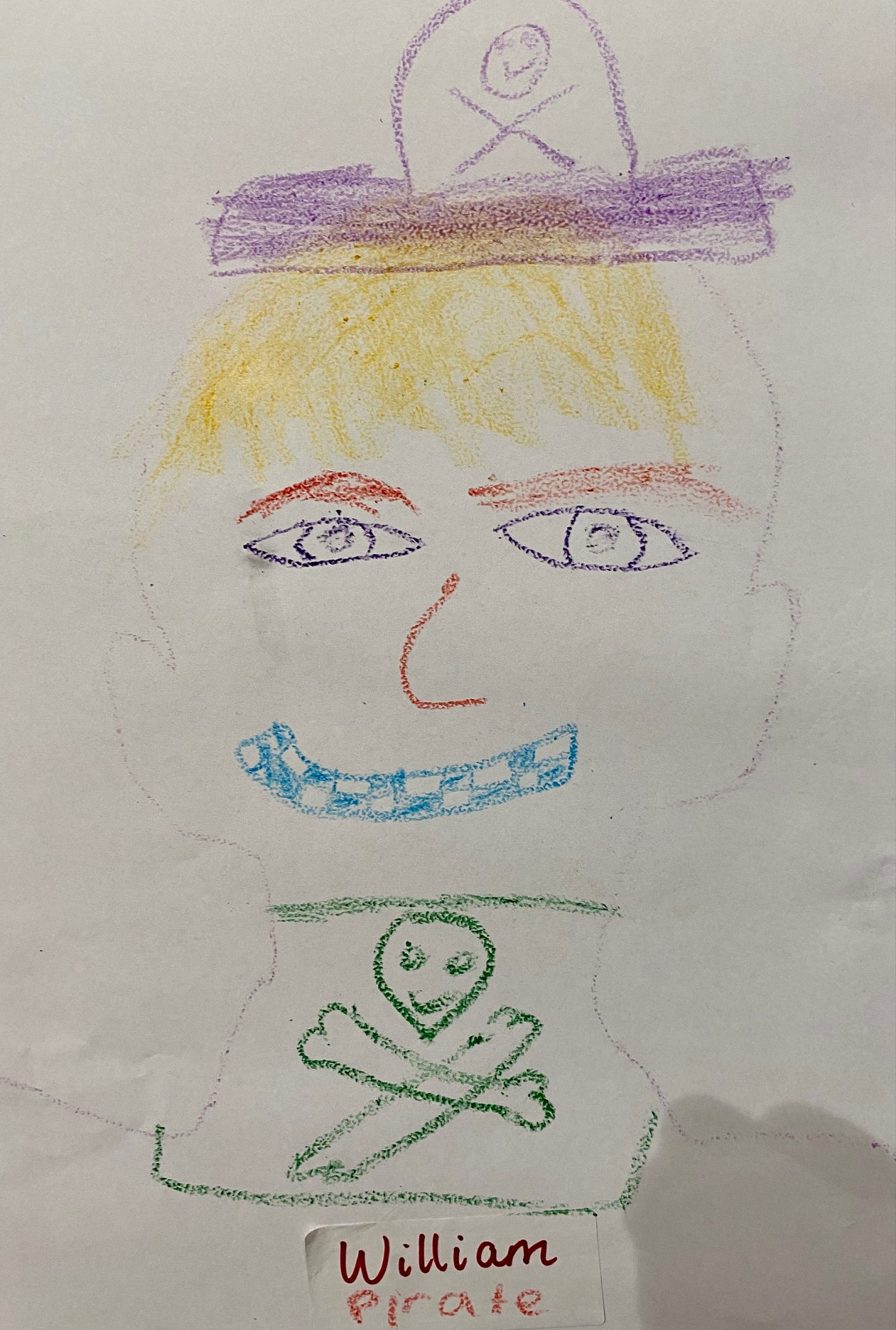 ‘This is Pirate John, he is a nice Pirate. He eats fruit for breakfast. I enjoyed the pirate dressing up game.’ Was great feedback from the wonderful Artist William.
