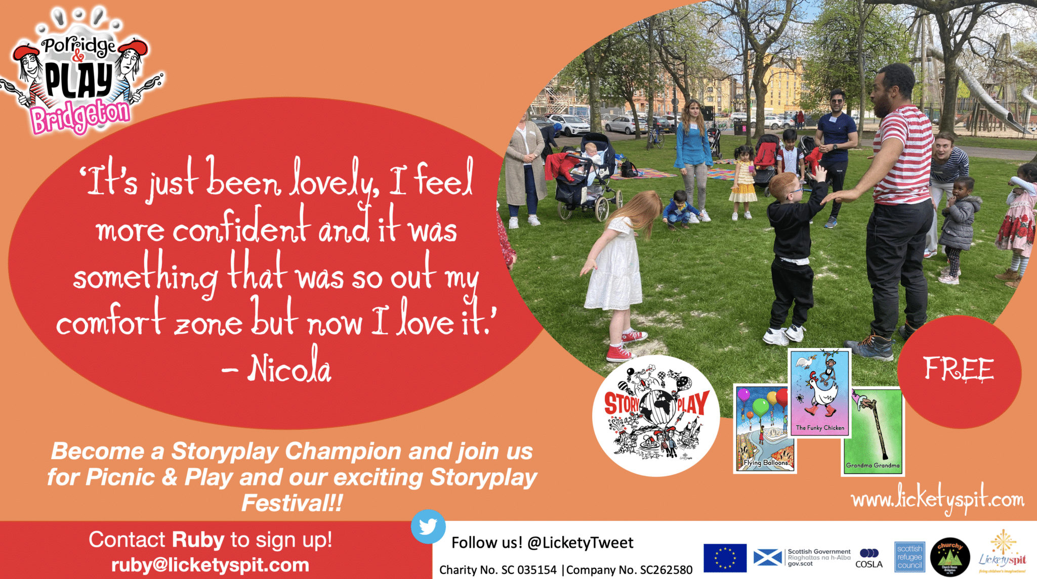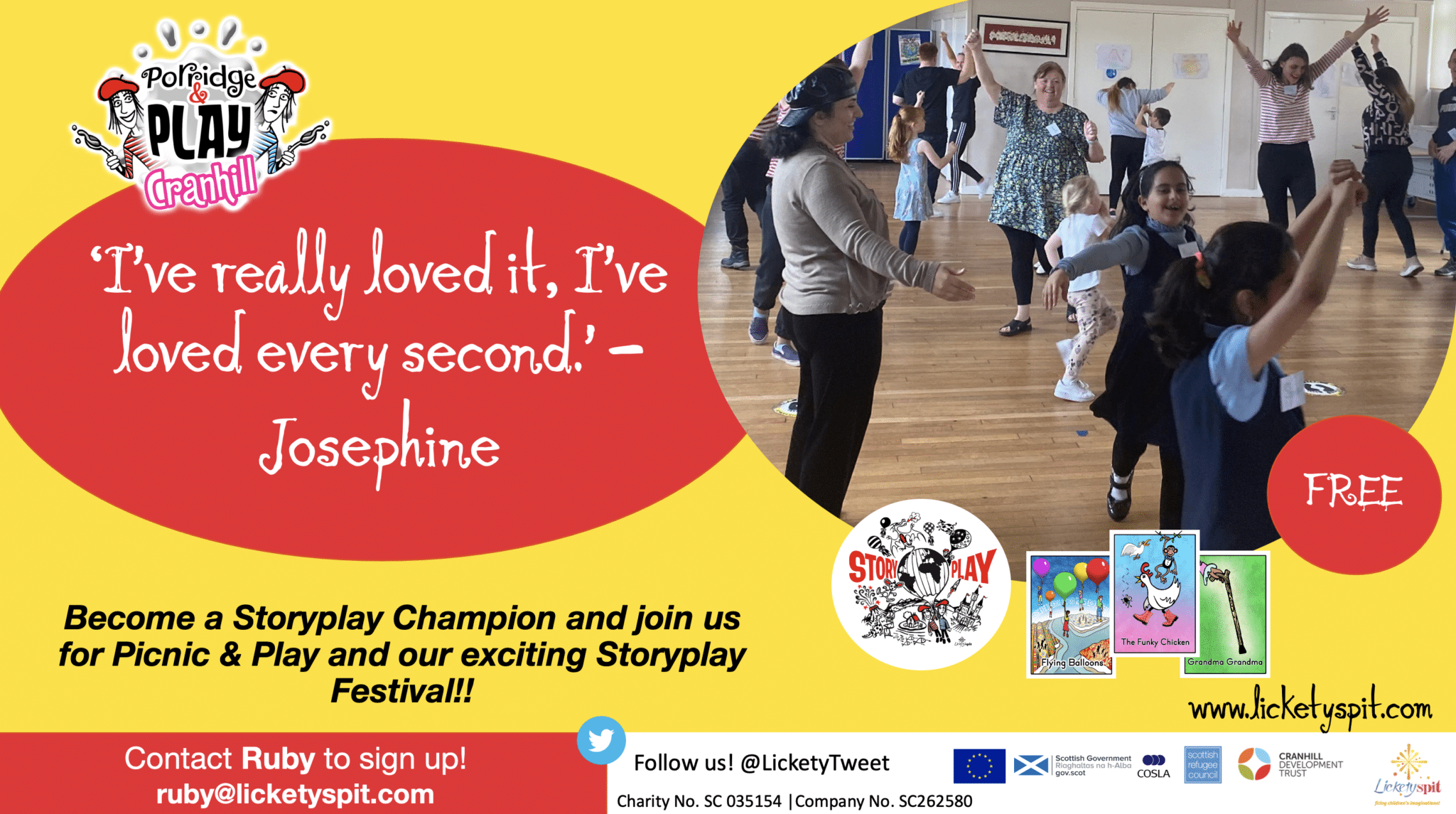 Lickety Volunteers support our actor-pedagogues at Porridge & Play and Picnic & Play sessions and other Storyplay activities!