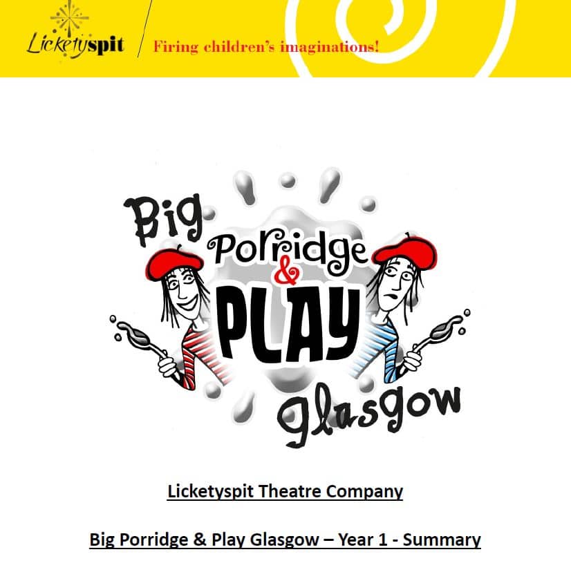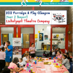 At Big Porridge & Play Glasgow (BPPG), families come together to play games, rhymes, songs and participate in imaginary adventures! The sessions also include a healthy, delicious meal round a table, and Reflective Drawing and the Licketyspit Art Gallery, where participants share their thoughts, feelings and ideas. BPPG has brought over 180 families together in their local community, culminating in a Celebration Events with family and friends, and whole city annual celebrations. You can read blogs about the 2019 sessions below or in Happening Now.