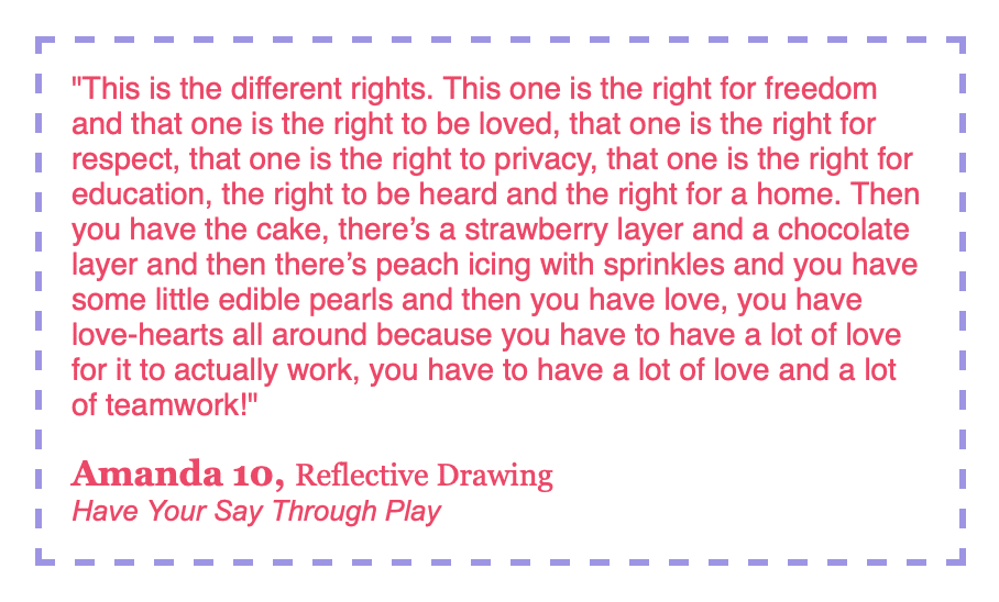 It’s listening to children directly like this that makes the job worthwhile. Really interesting to see how the medium of play can help children open up and share their thoughts, concerns and aspirations.