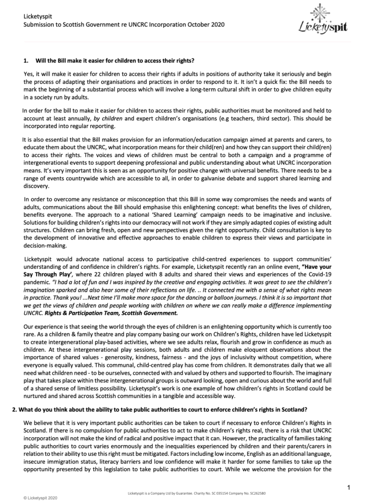 children about everything we do. We also deliver Have Your Say Through Play sessions where the Lickety Playcards are adapted to explore things affecting children, including UNCRC Incorporation and their experiences of the pandemic.