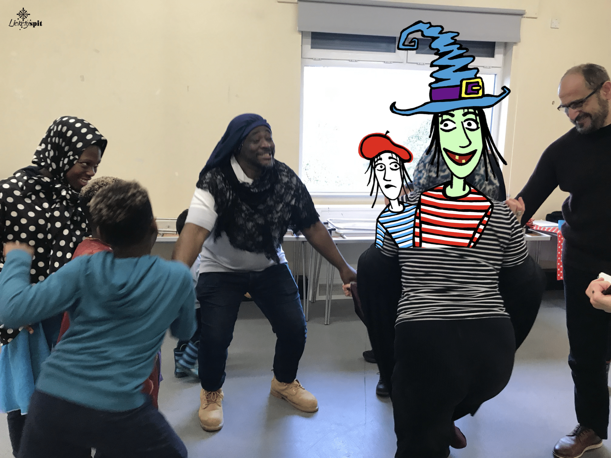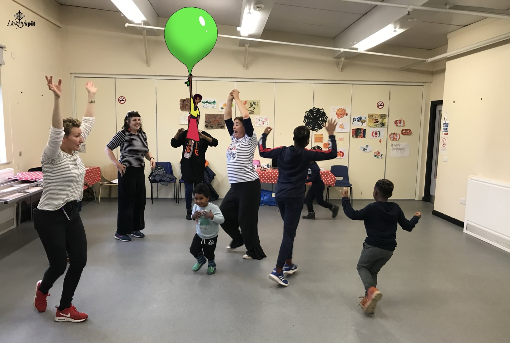 Well! What a super spooky Witchtastic session we had today at Porridge and Play with Licketyspit. After warming up our bodies and minds with a big old boogie and making up some crazy new animals, we went flying off in a bunch of magic, colourful balloons. It was so exciting! We saw Spain and Sudan, ate Donald flavoured ice-cream and found Polar bears.