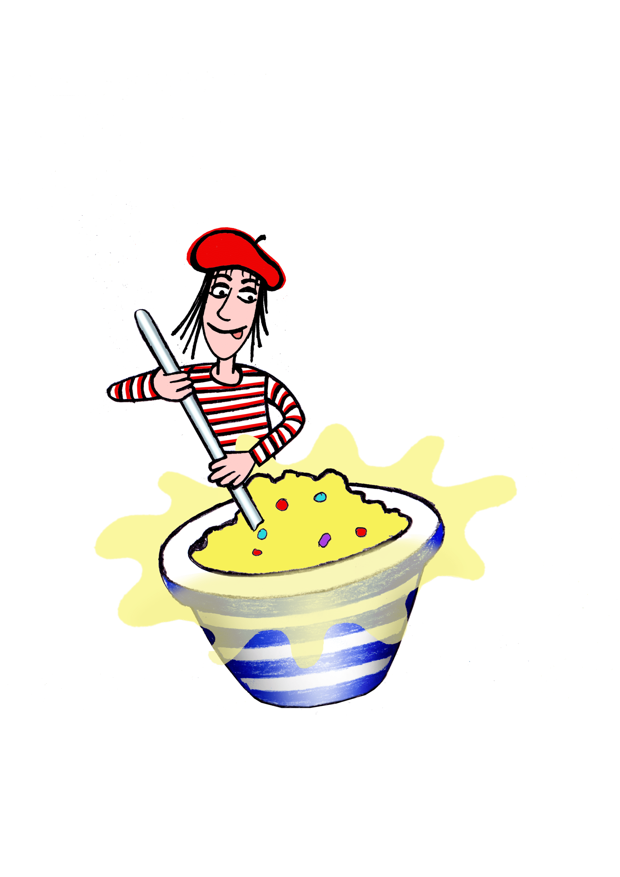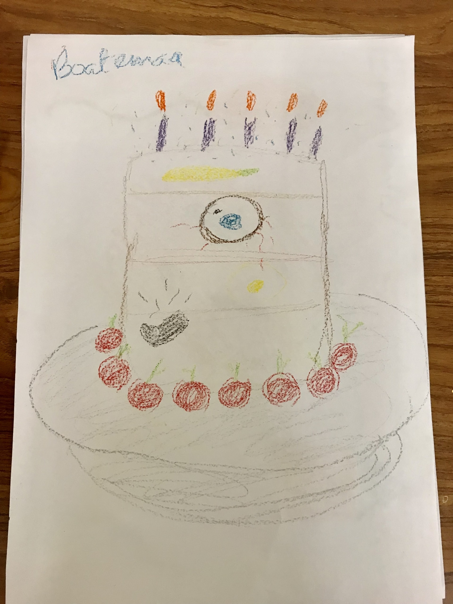 We stirred in the icing sugar, Emmanuel’s magic drink, Boatemaa’s ogre’s eye, the sliced orange and Gabby’s red icing that tasted like strawberries. We also added the glitter, the love and the sprinkles and stirred and stirred and stirred and it was absolutely delicious!