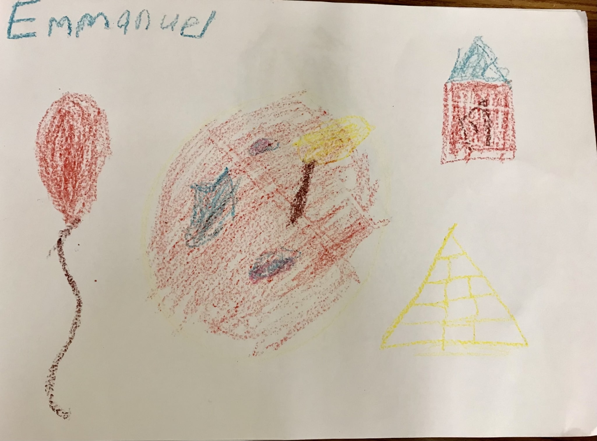 We flew further and further across the globe with our second balloon and ended up hovering high above The Pyramids. Emmanuel told us that inside the Pyramids there was a house with mummified remains.