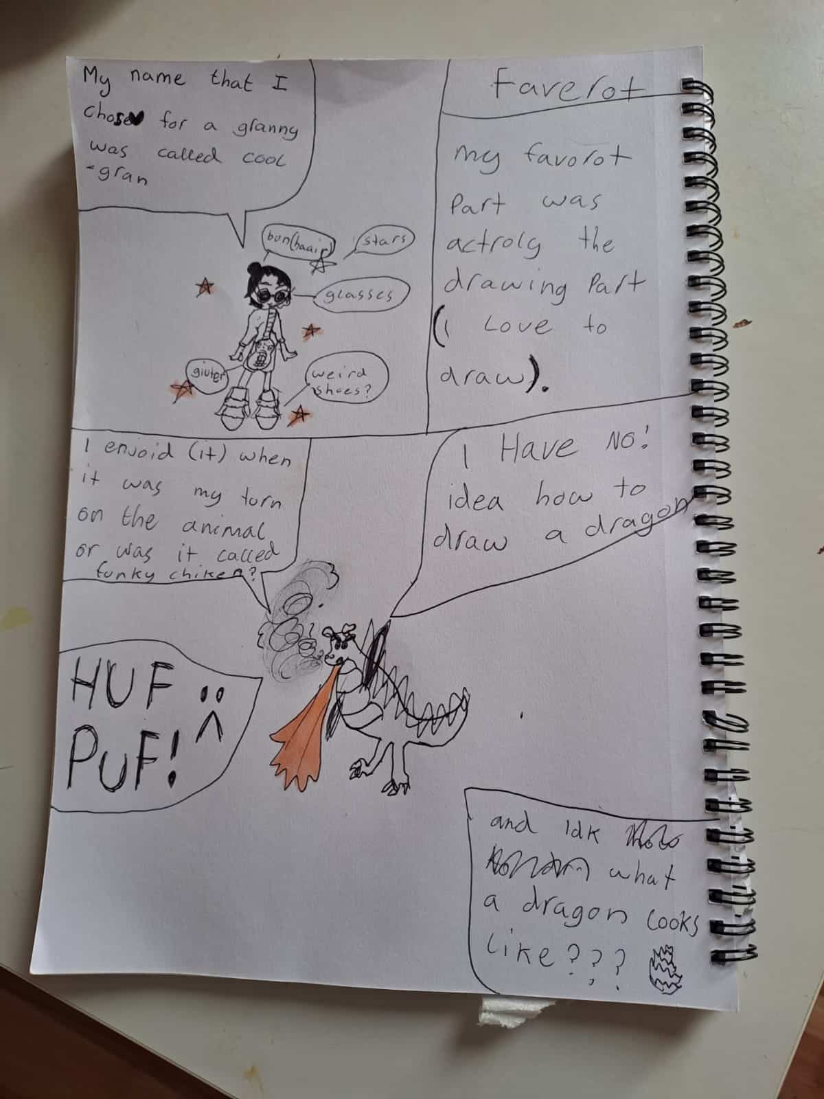 We were all very ready for a Dressing Up and we transformed into very special Grannies! We had Granny Leopard who is very fast and makes chocolate chips and white chocolate cookies very fast too. And what about Cool Granny and RockStar Granny? We met Granny Bunny who loves soup in the morning and Granny Doctor who can tell what’s wrong with you in a flash and advise you on the best treatment! Granny Artist loves to draw and Granny Happy Kind lives in a lovely house with a huge pond at the front! Granny Smart says ‘Pardon’ and eats cheeseburgers before taking off for a wee fly