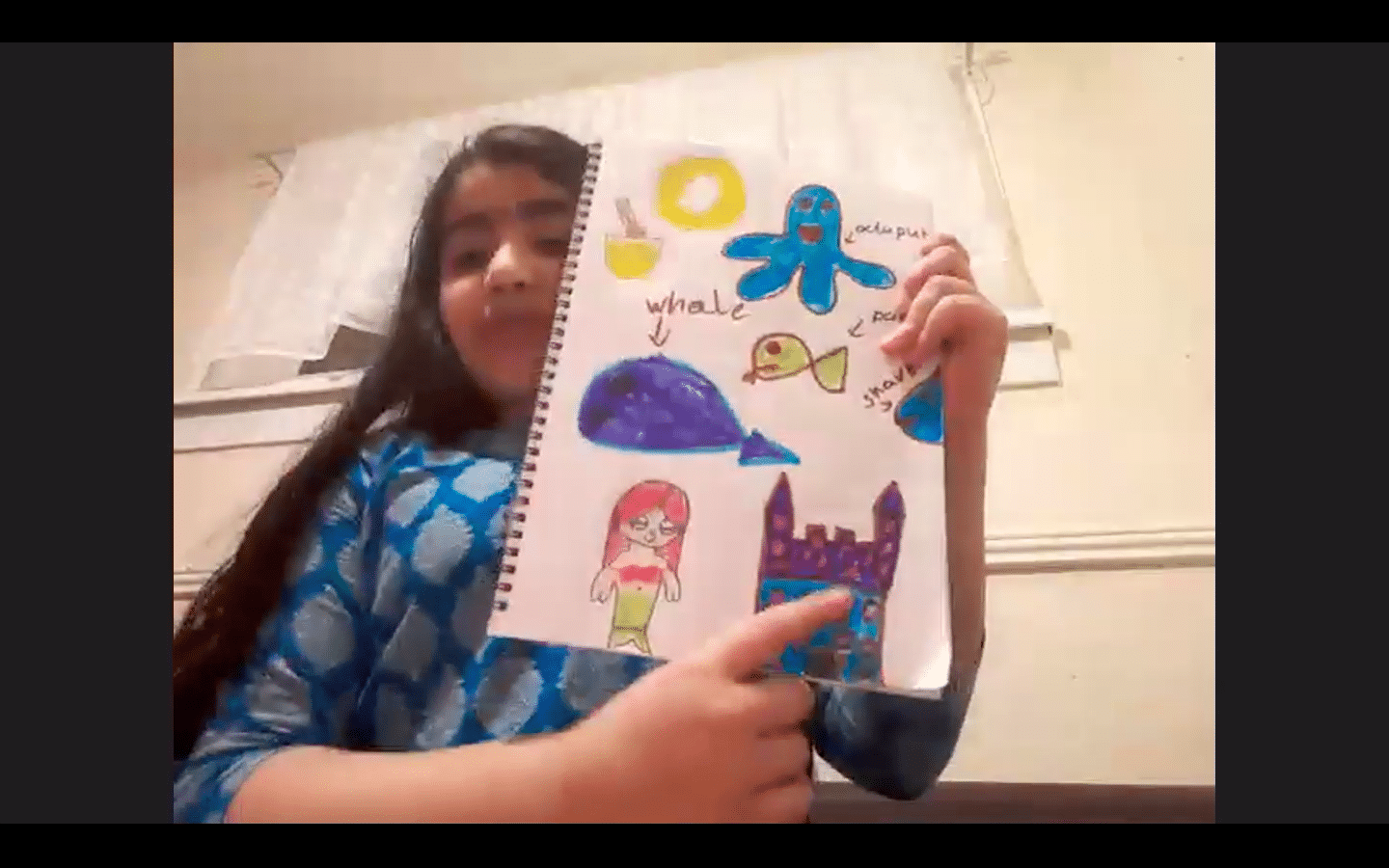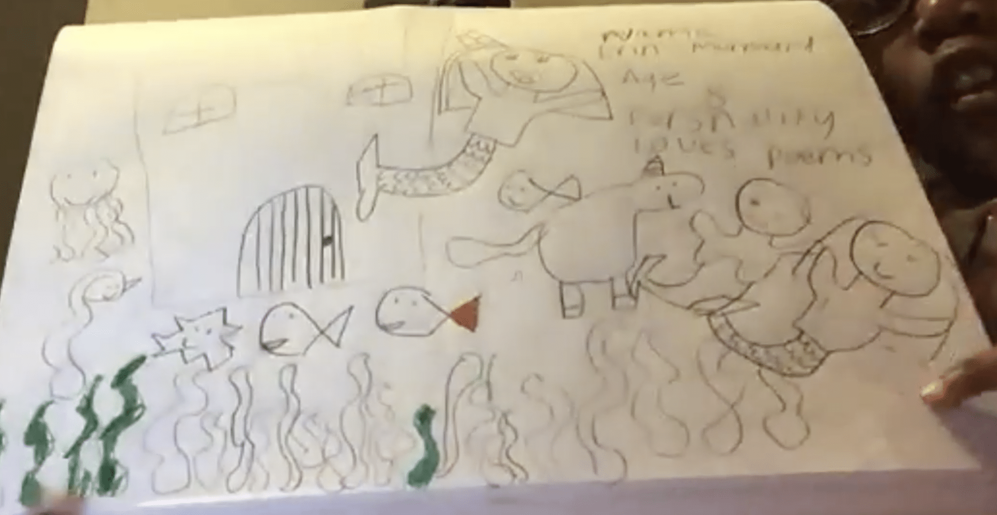 ‘My name is Goldie the Mermaid, I like to eat ice cream and I live in a magical kingdom under the sea that has unicorns and Narwhales!’ Erin, 8