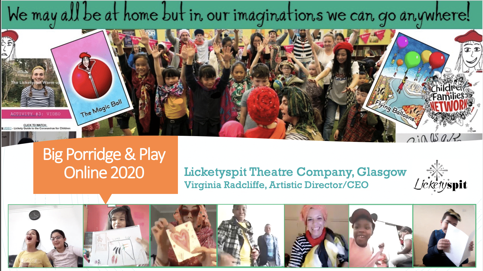 Last week Licketyspit Artistic Director and CEO Virginia spoke at an International Play Association webinar on Play in the Time of Crisis. People interested in play from all over the world were fascinated to hear all about Big Porridge & Play Online! And we heard about some other cool play projects in Portugal, India and Scotland!