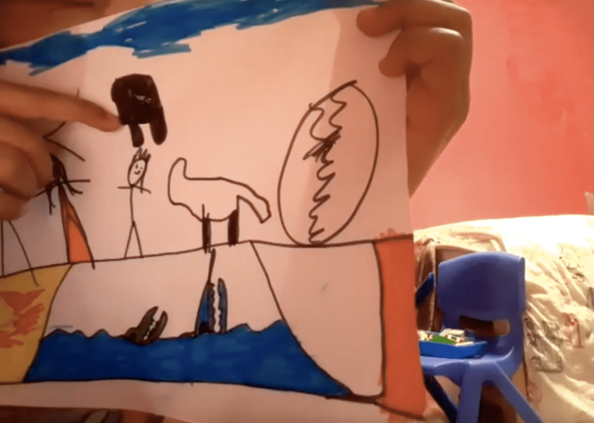‘What I done is a little snowman and then I draw the magic ball and then the plane and then the draw the ice cream from unicorn world and then I wrote this – you and me are always friends, for all of you!’