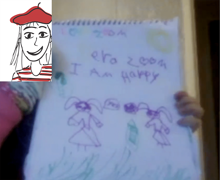 ‘This is when we were playing the game and someone playing hop like a bunny – that says I love Zoom and I am happy!’