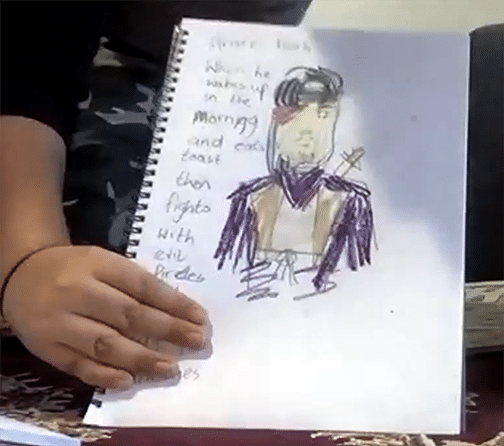 ‘I drawed Iona losing her crew and these are all of her crew and I wrote princess cause this is me saying you don’t need to worry Iona we’ll make a new team for you!’