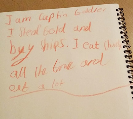 ‘I am princess pirate I like to eat kit Kat with ice cream and I like to be a pirate!’