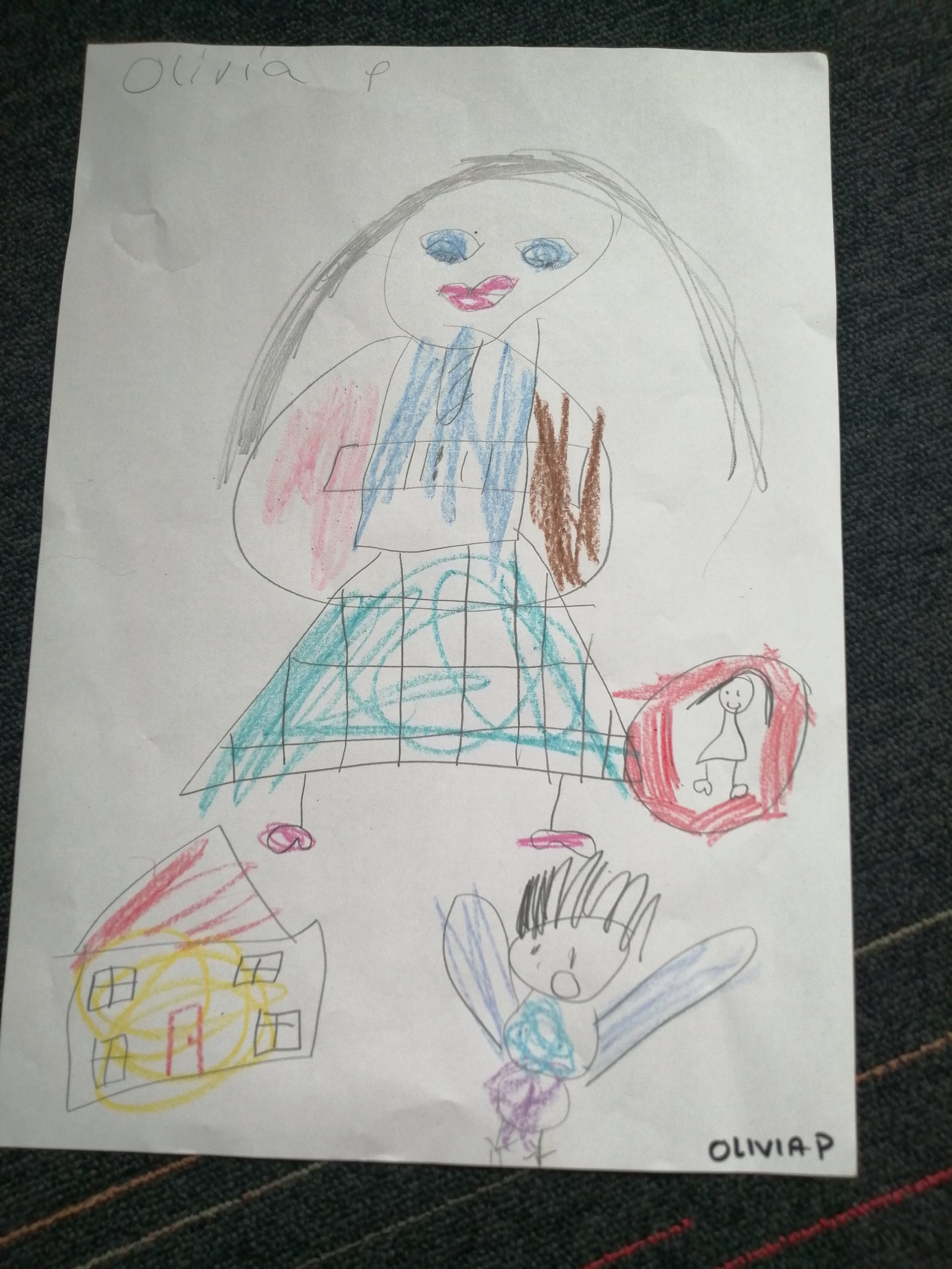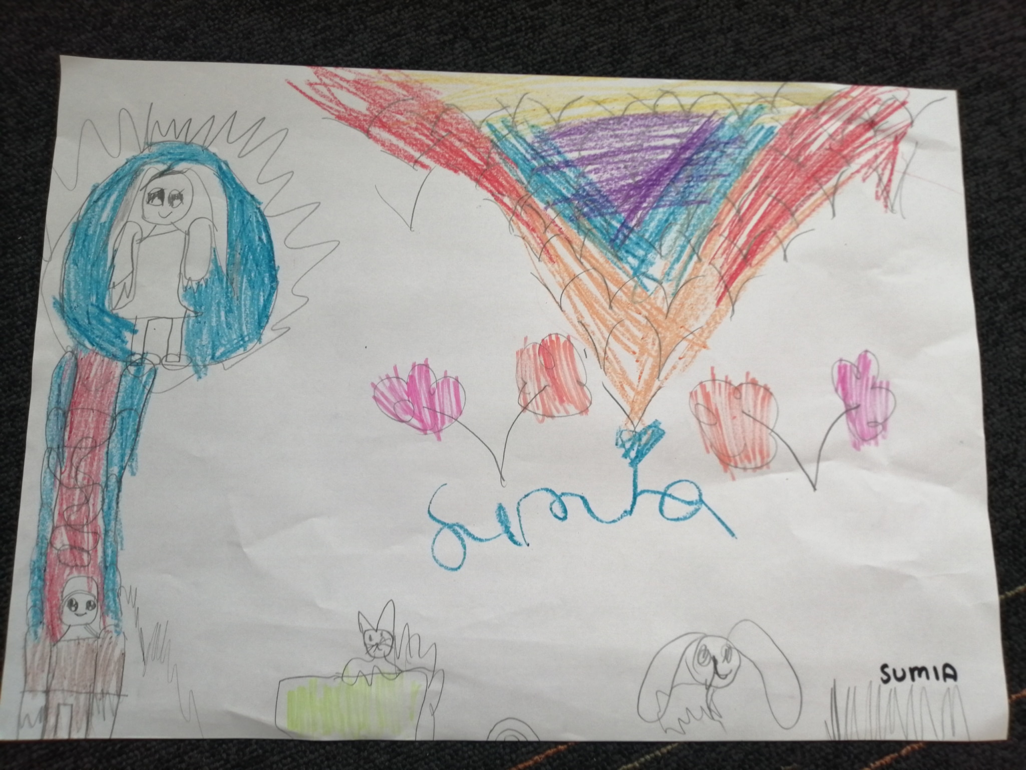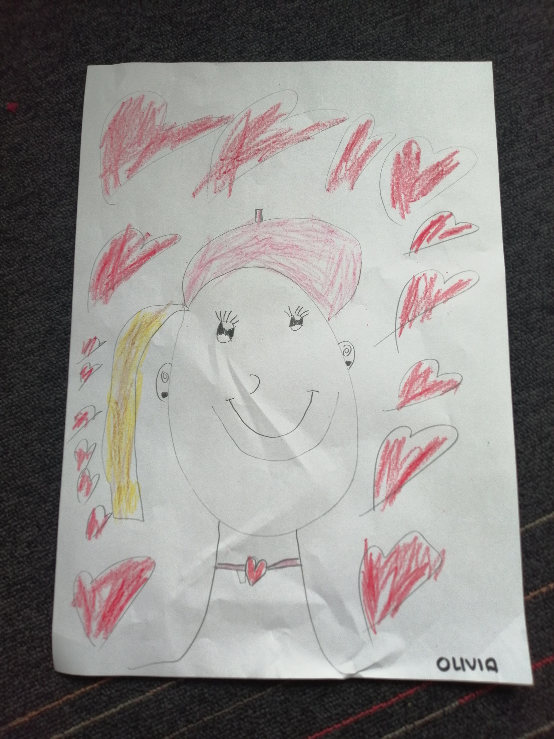 That’s a balloon, that’s me playing the games. I had lots of fun. That’s a loveheart because I loved them. Dressing up was the most fun. I liked playing with my friends.