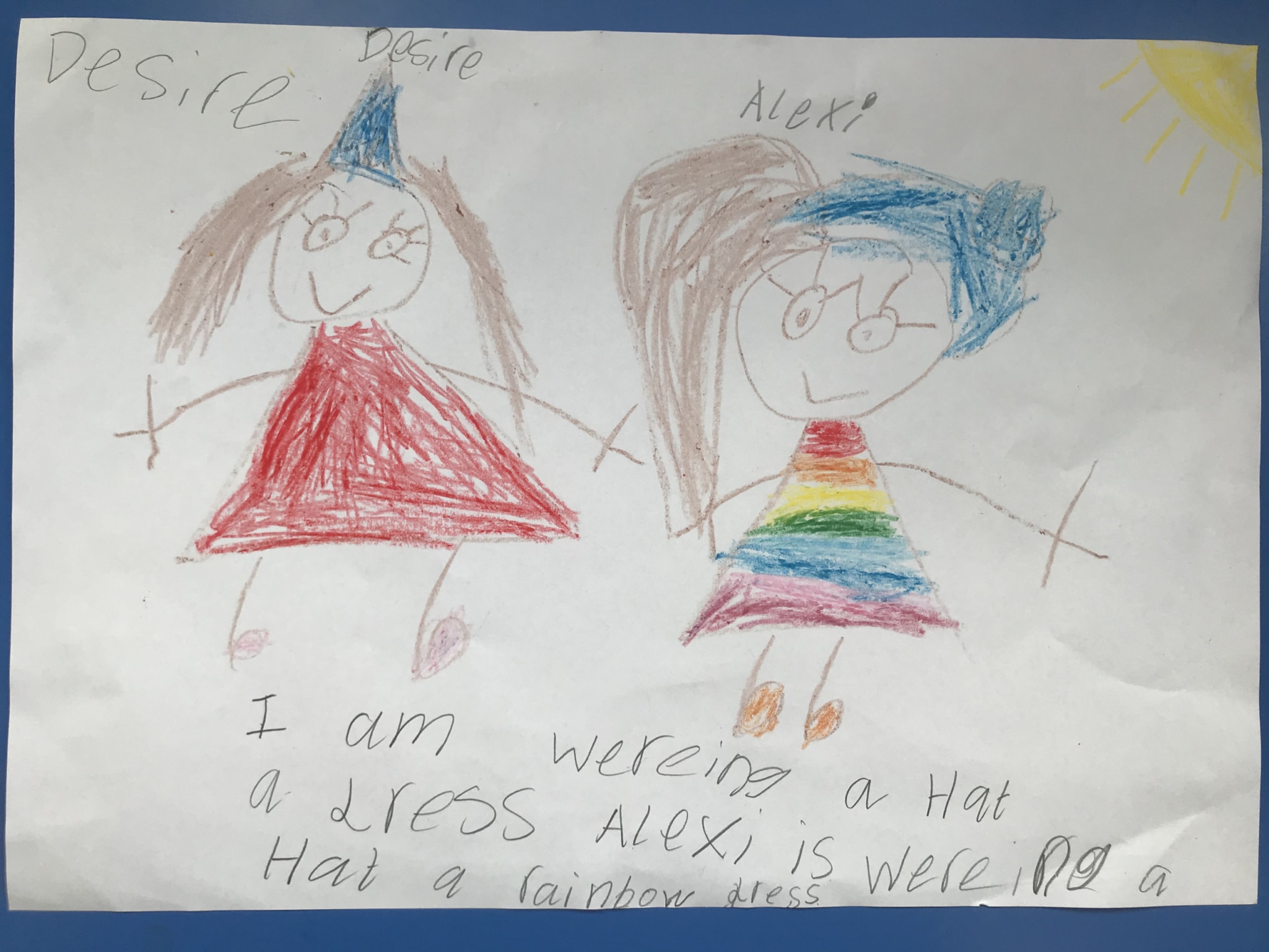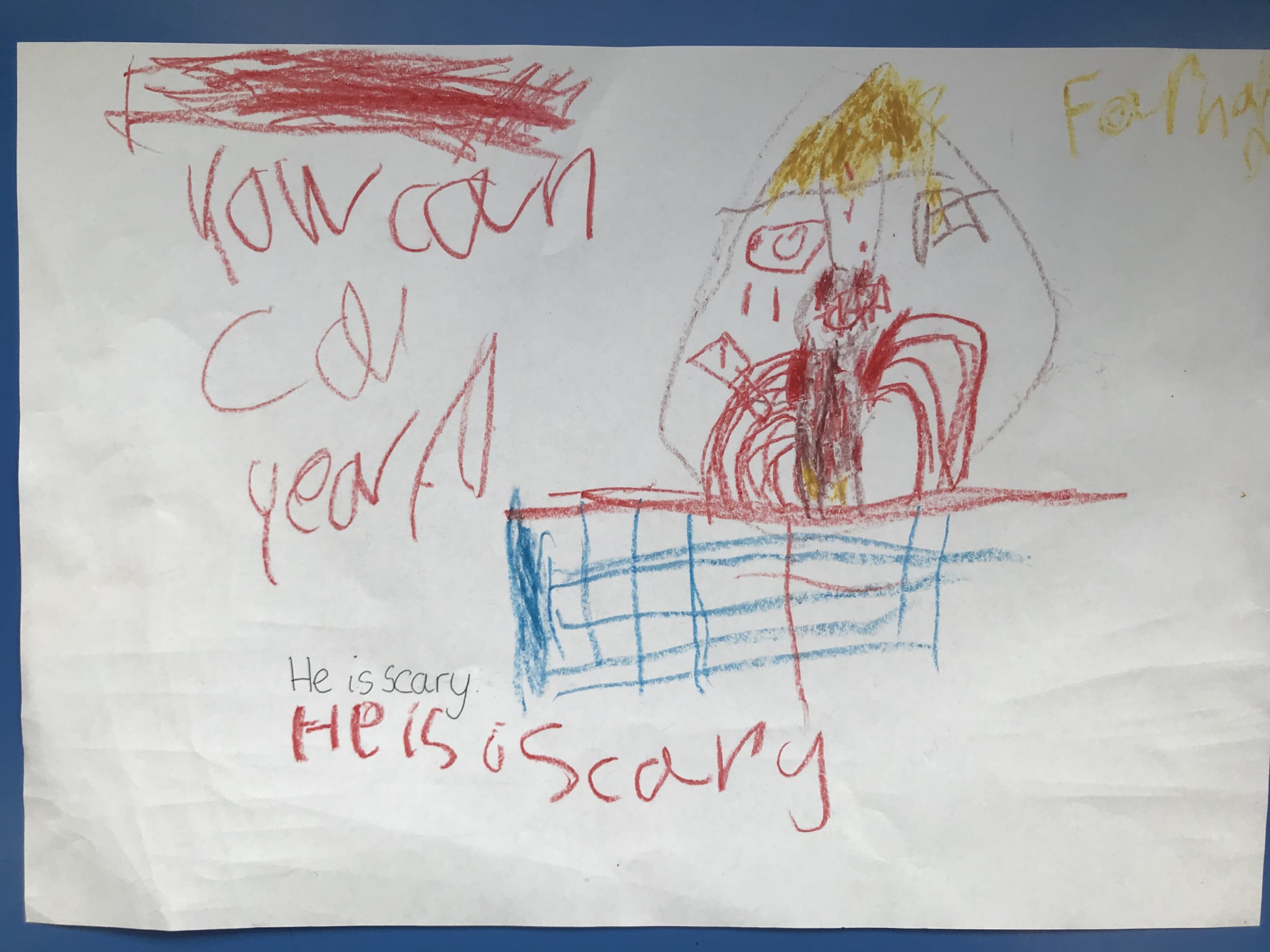 I drew me wearing a cave suit and a hat! That’s Jack crawling around on the floor as well! I really enjoyed the witches game because I loved the running around part, that was really fun!