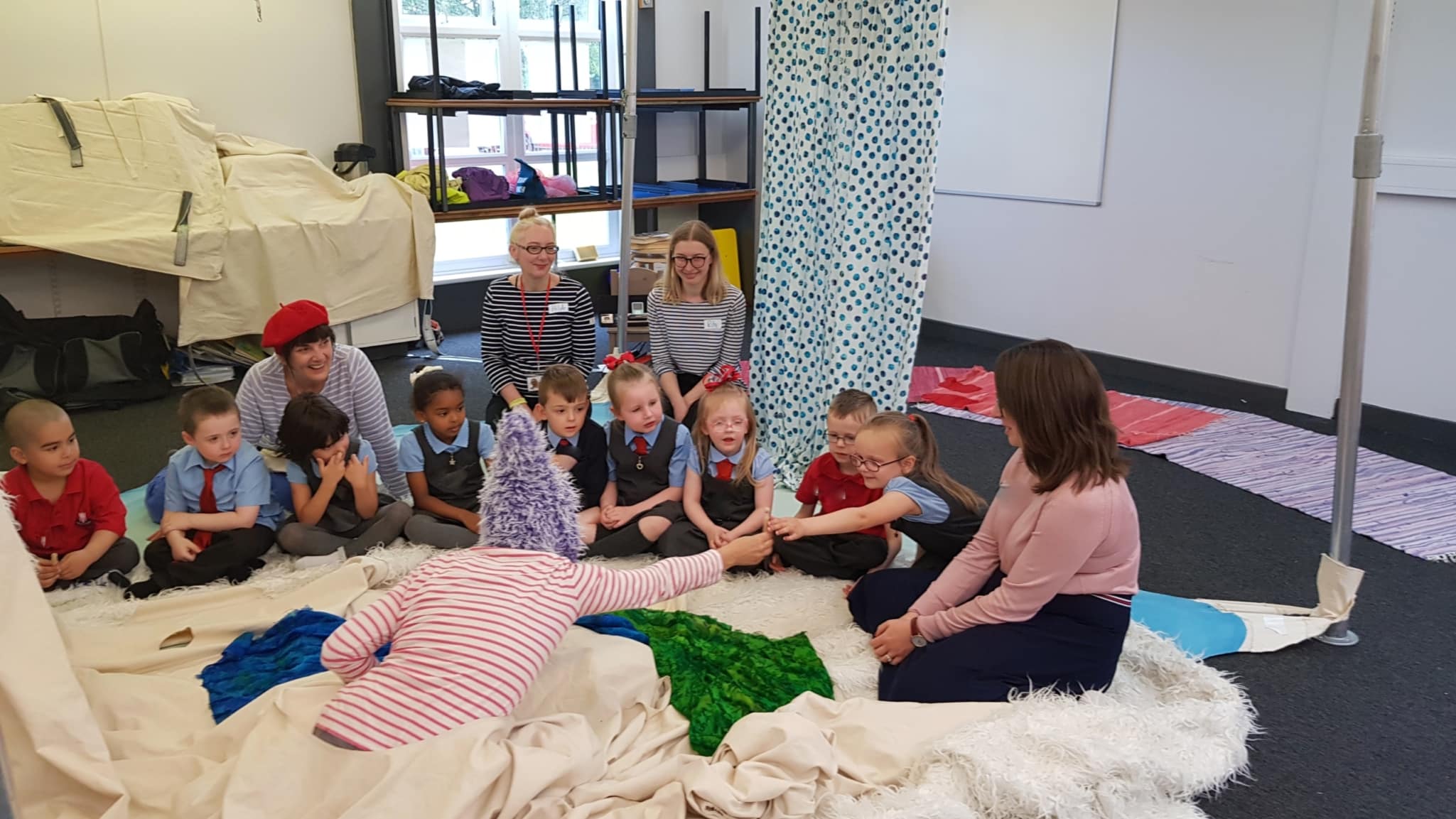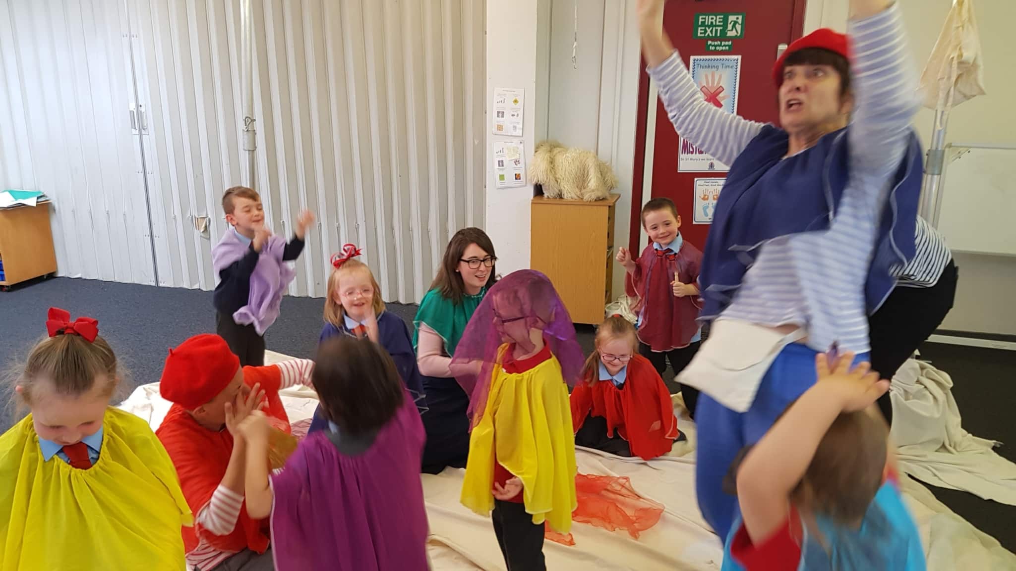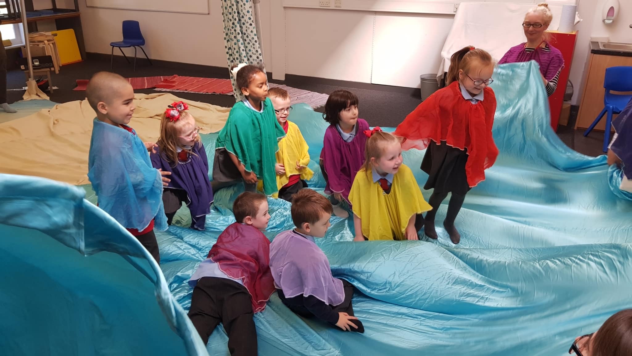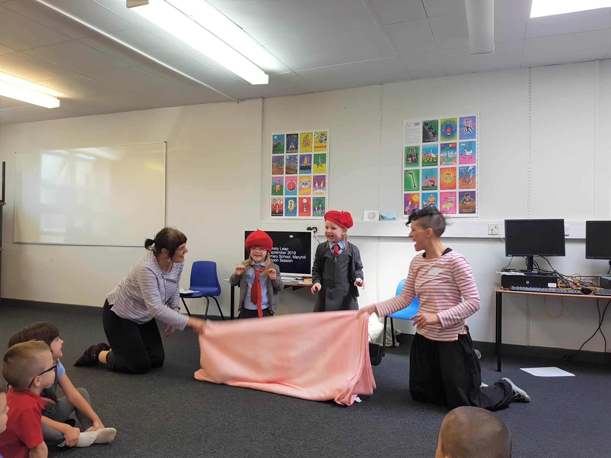 On the boat, everyone relished trying each other’s fish and M gave the Fishy Lady a hug goodbye. In the Cave we saw bats, and everyone boldly shouted their name to make an echo. When the Bear appeared, a couple of people were a bit nervous, but they overcame any fears and patted and hugged it! S articulately told Bold Margaret about the Bear. L asked the Bird for a lift and after we reached the top of the Mountain, other L suggested sliding down.