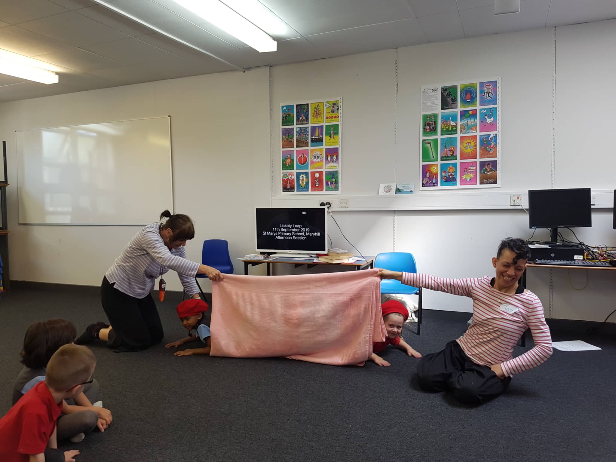 We had a fantastic LicketyLeap with 9 children in group 2 (P1b). Every child contributed in the conversation at the start, C was especially chatty! After our mudfight, M suggested we go into the Sea to wash it off. In the Sea, L showed Worried Margaret how to swim on her back and R saw a boat. Everyone loved finding and sharing treasure.