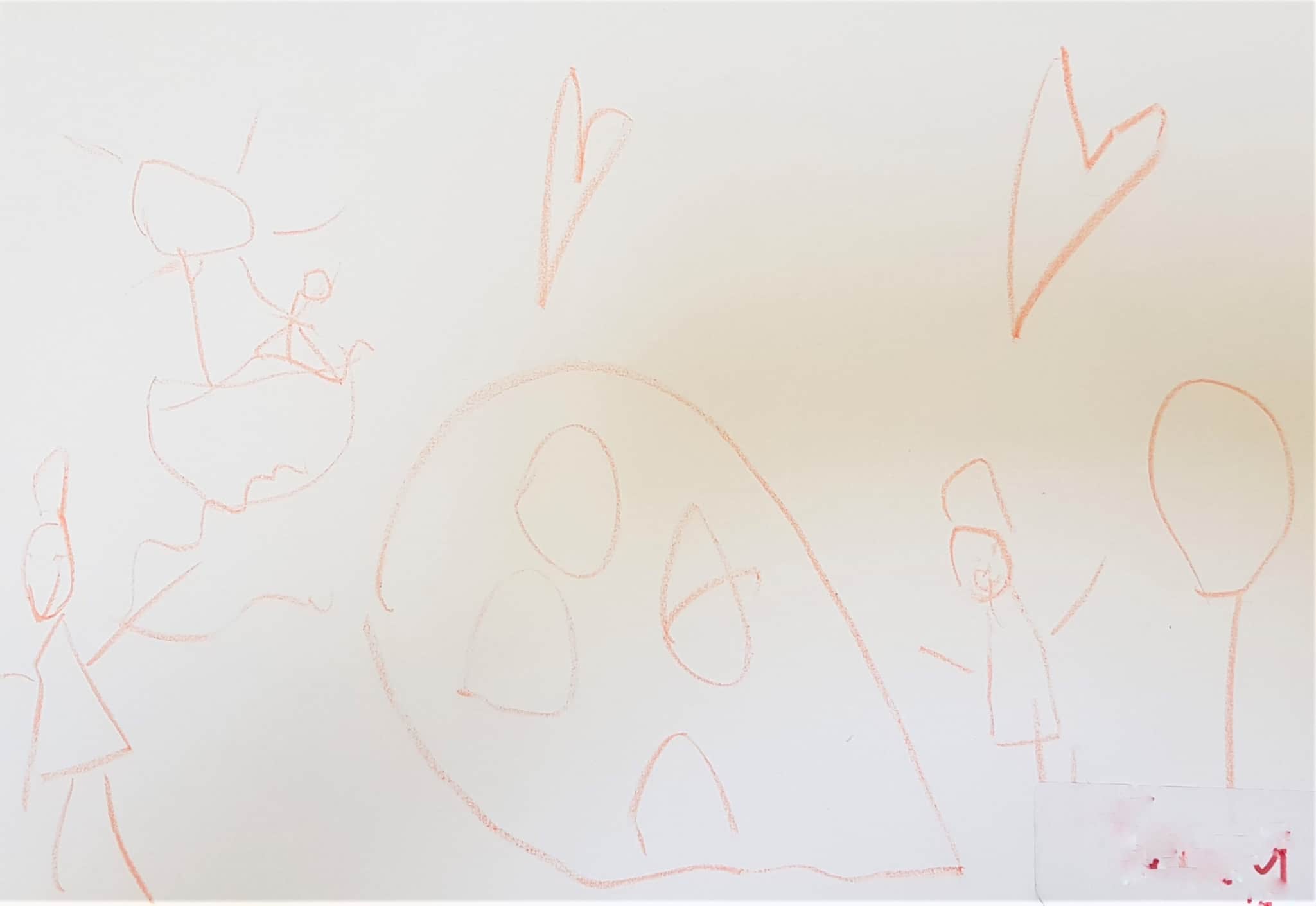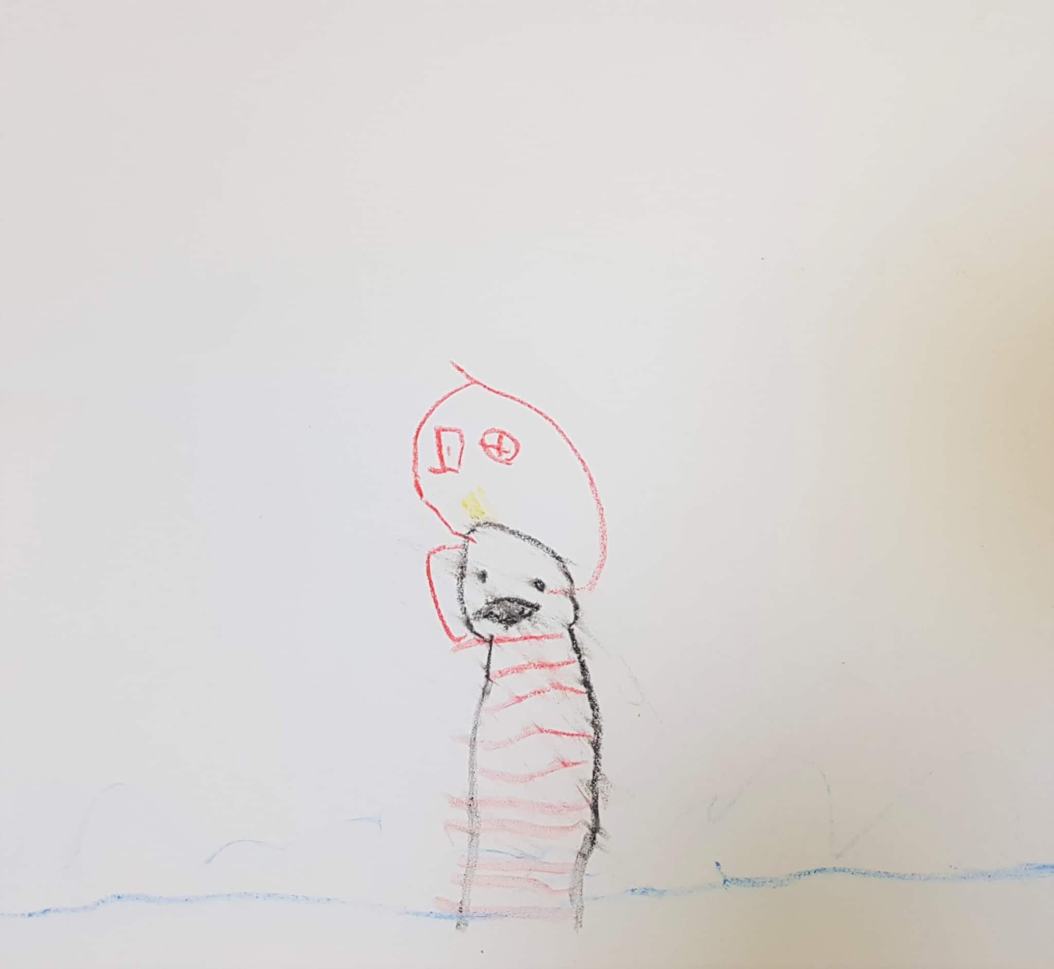 “[I drew] the wind, the grass, the sky, the balloon, the snow all come down and the big rainfall and the river. At the end was my best bit.”