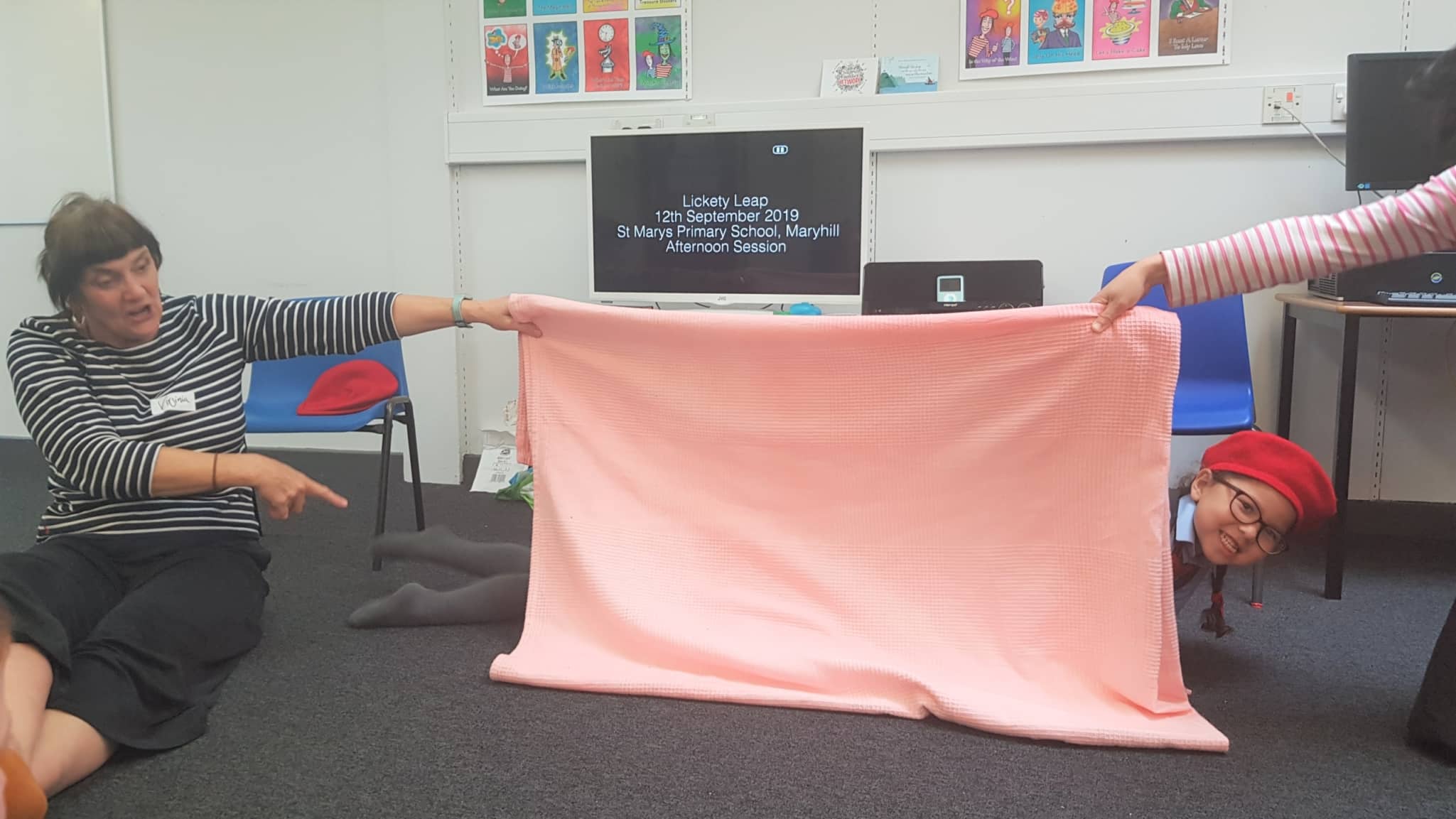 We had a lovely LicketyLeap with 9 children from Group 4 (P1a & P1b) and Miss Carty. They were particularly tickled by the Margaret & Margaret Peekaboo entrance. They loved the Oogly Boogly Lady’s mini-worlds and were all actively involved.