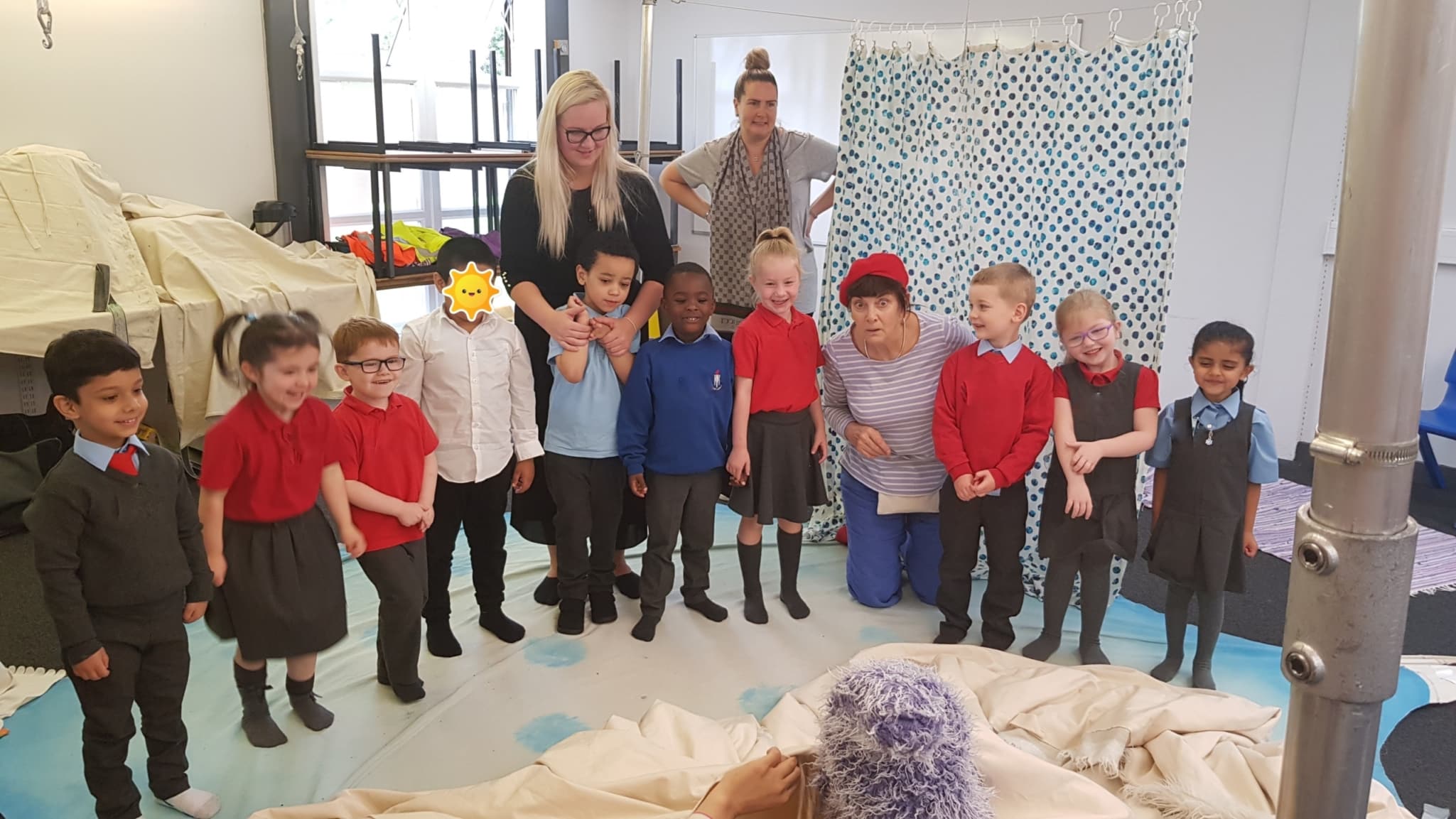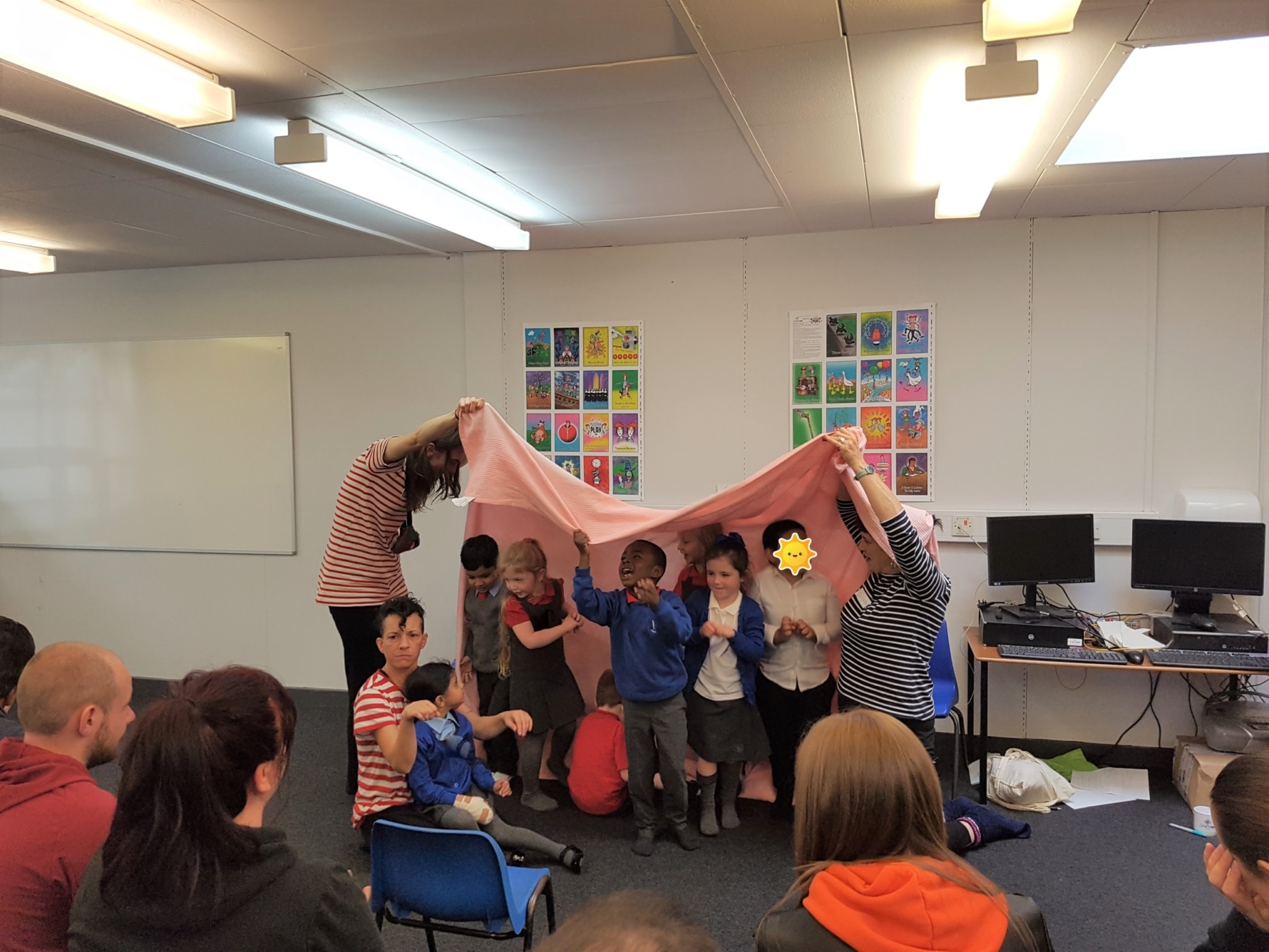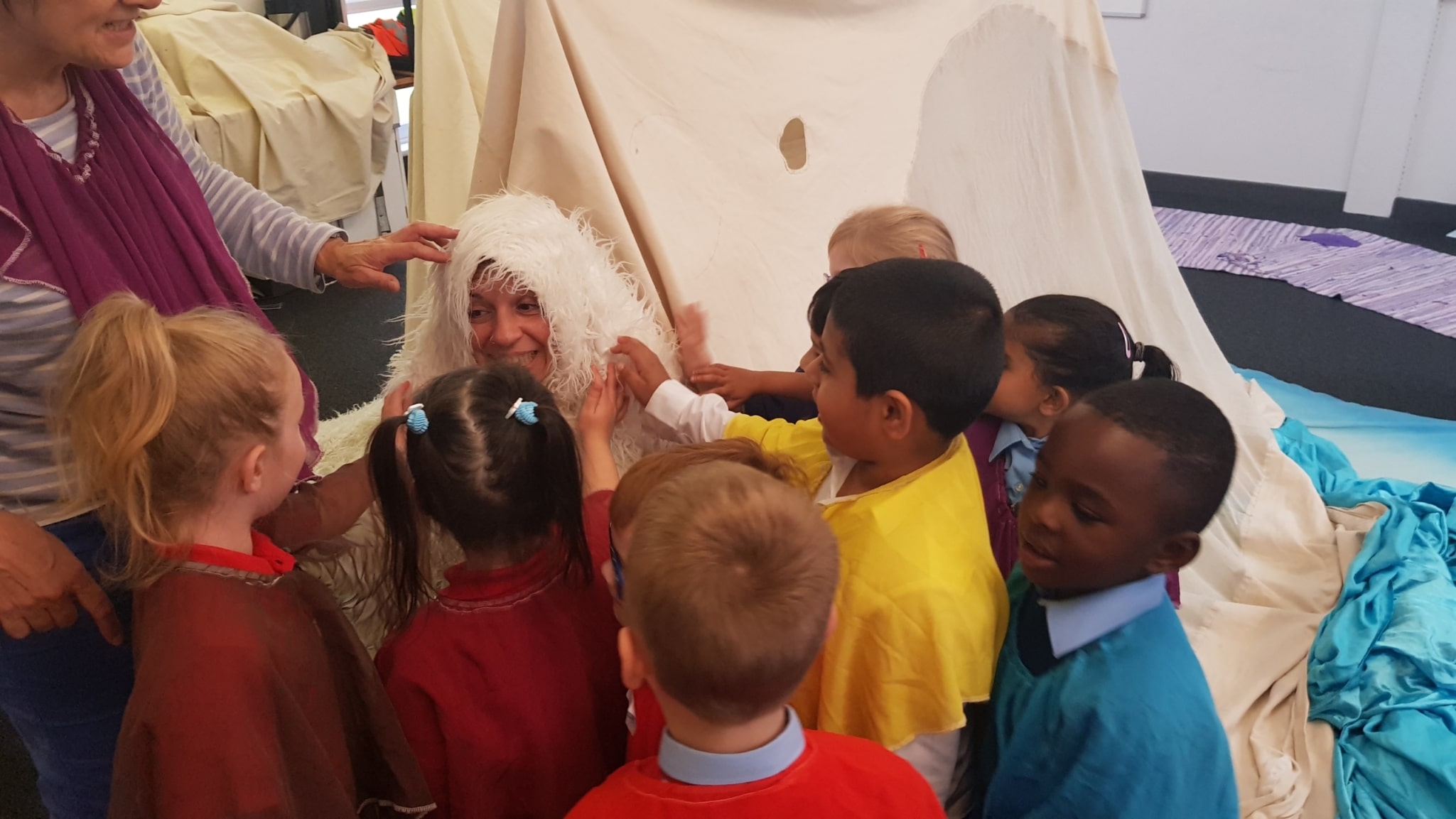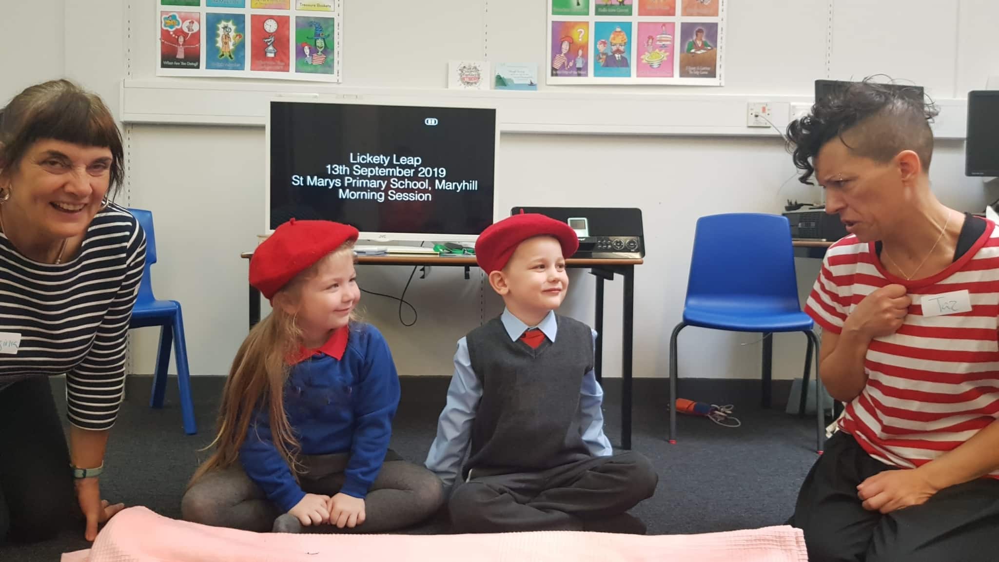 The final LicketyLeap group (P1a) was the biggest yet (10 children) and you could tell there was already a buzz about Margaret and Margaret in the classroom! By the time we were with the Oogly Boogly Lady everyone had bought into the story, with M saying “She’s gone into the mountain!” when Bold Margaret disappeared.