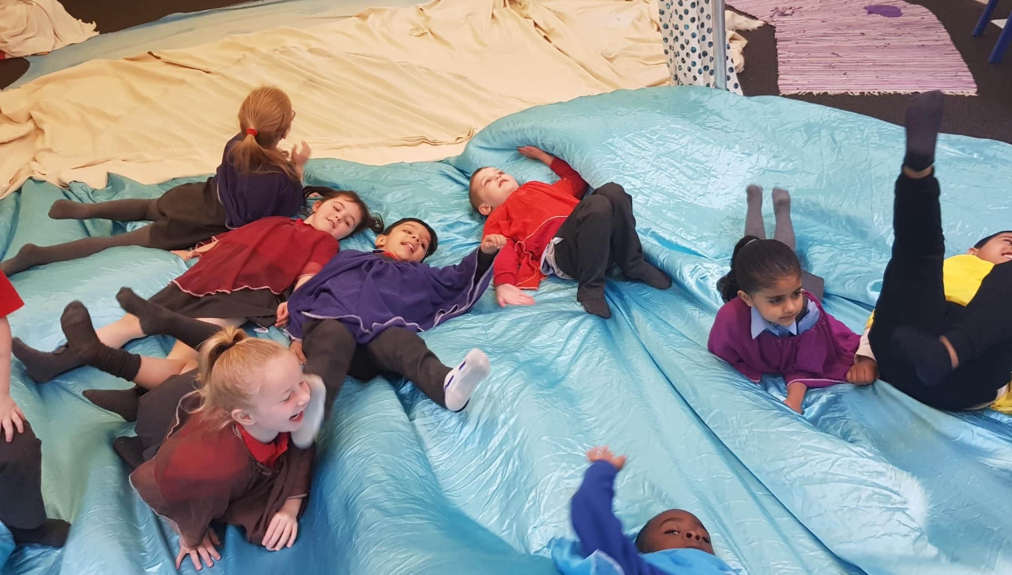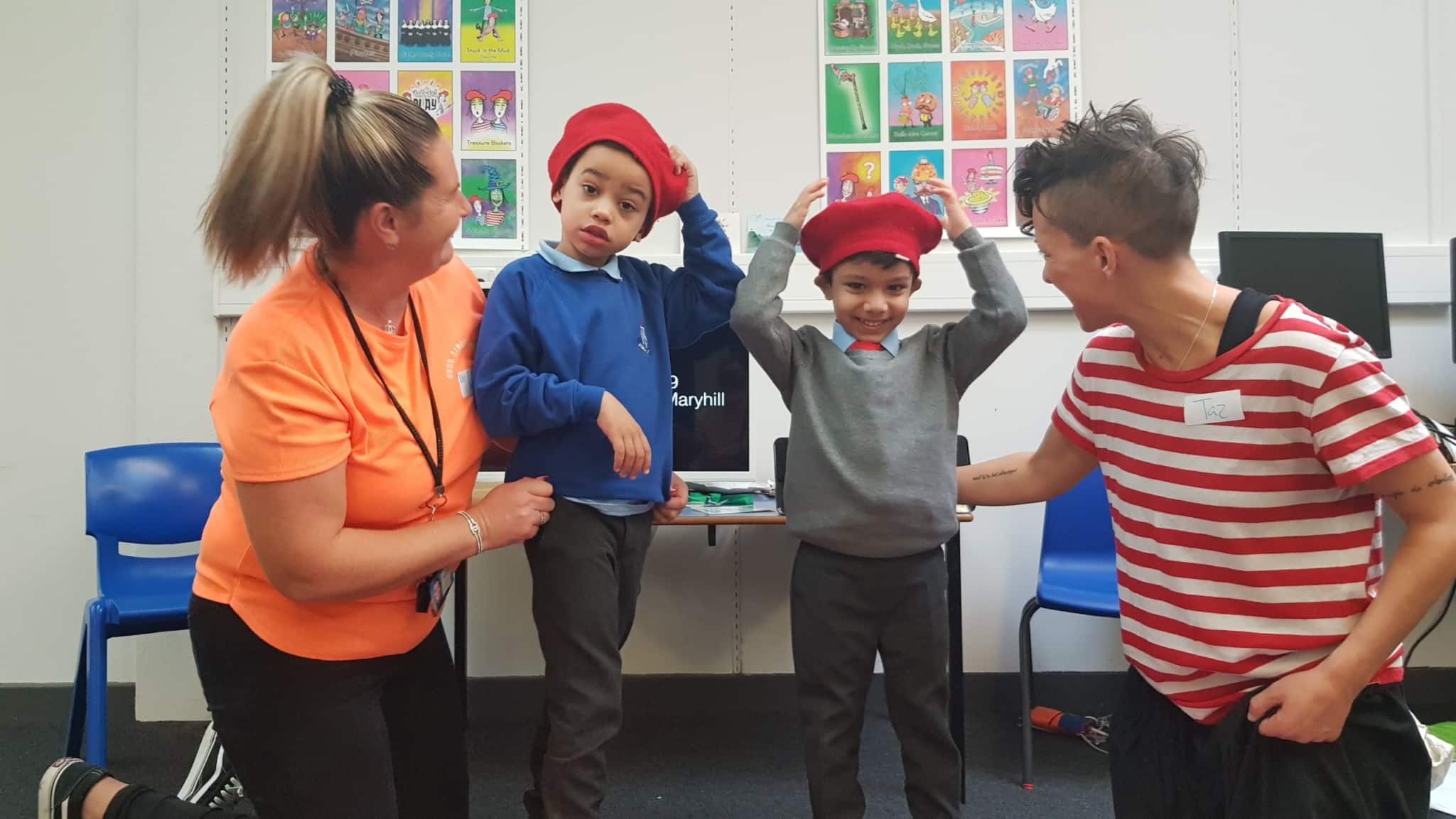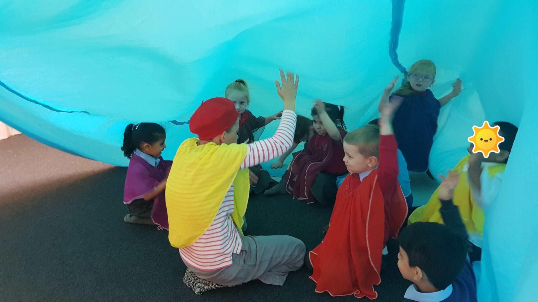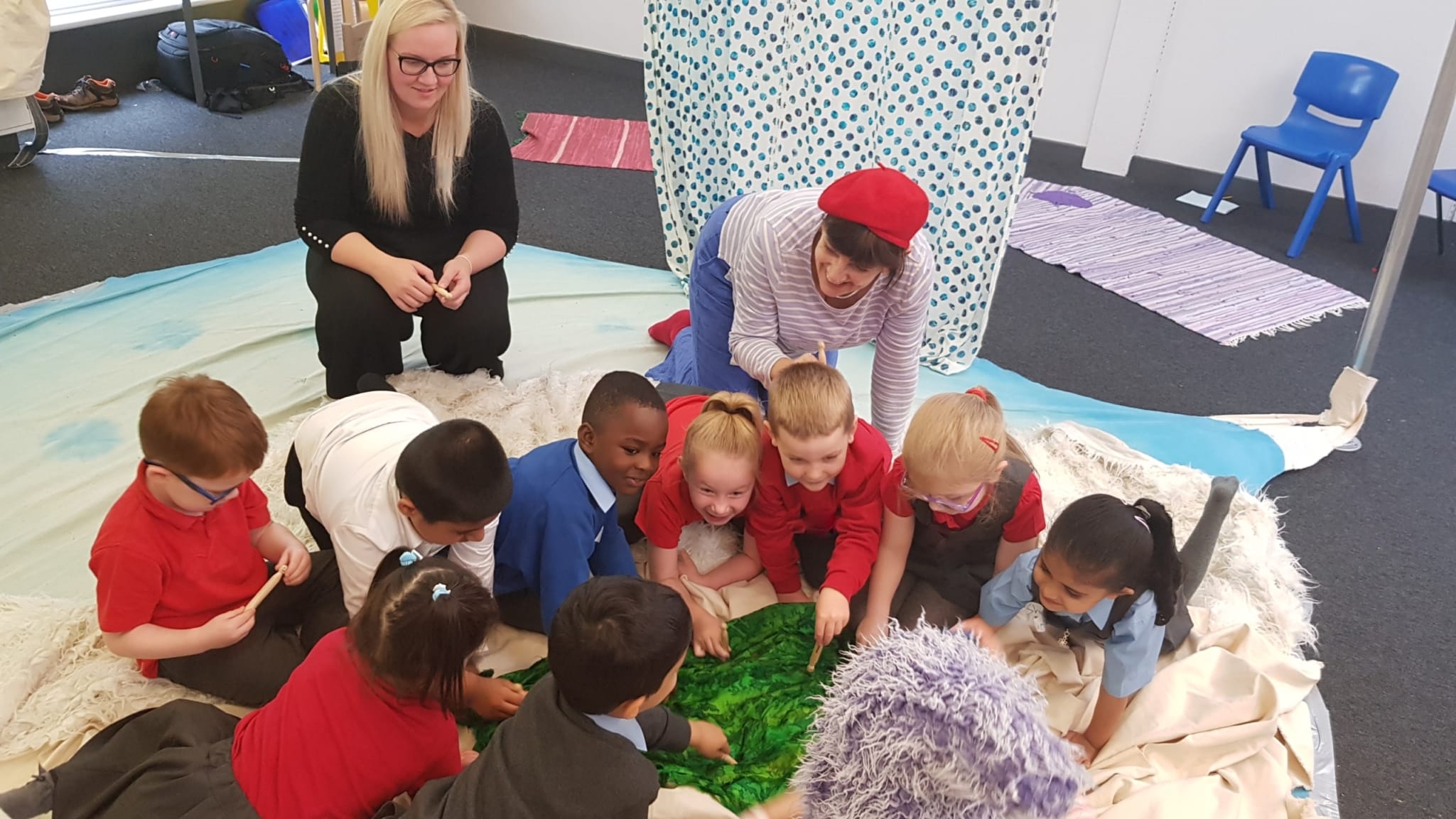 The final LicketyLeap group (P1a) was the biggest yet (10 children) and you could tell there was already a buzz about Margaret and Margaret in the classroom! By the time we were with the Oogly Boogly Lady everyone had bought into the story, with M saying “She’s gone into the mountain!” when Bold Margaret disappeared.