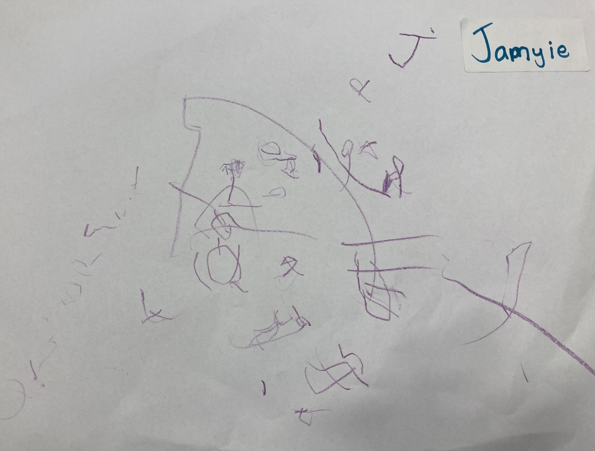 After we had all our adventures we all came together to do some reflective drawing. This gave us time to think and chat about the amazing things we had experienced in our imaginary play. We especially heard a lot about the children’s personal adventures under the sea.