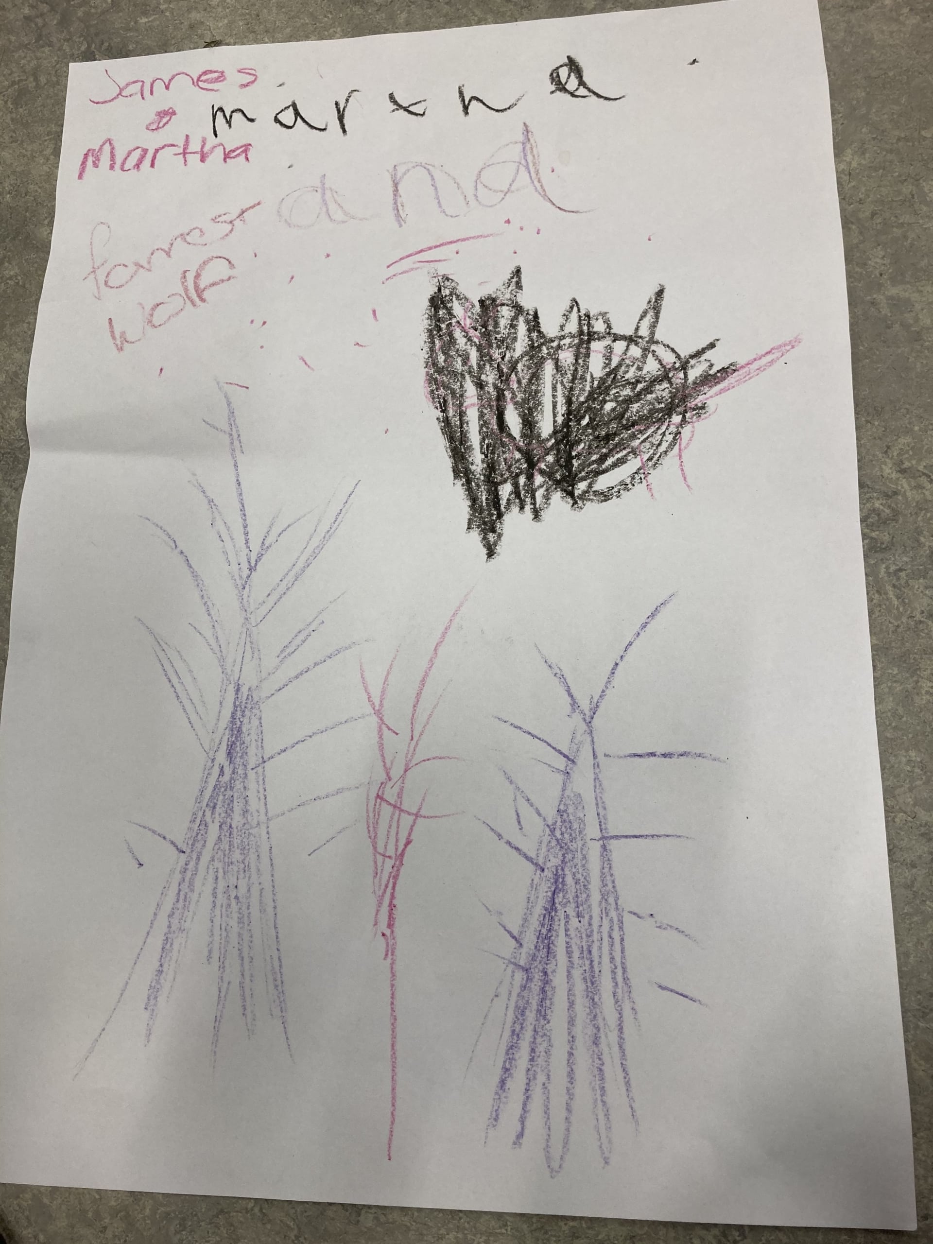 That’s everything we put in the cake, giant snake and seeds. That’s the jam and the water. That’s some flowers and some bumblebees cat going into the hive. My favourite was Mr Wolf!