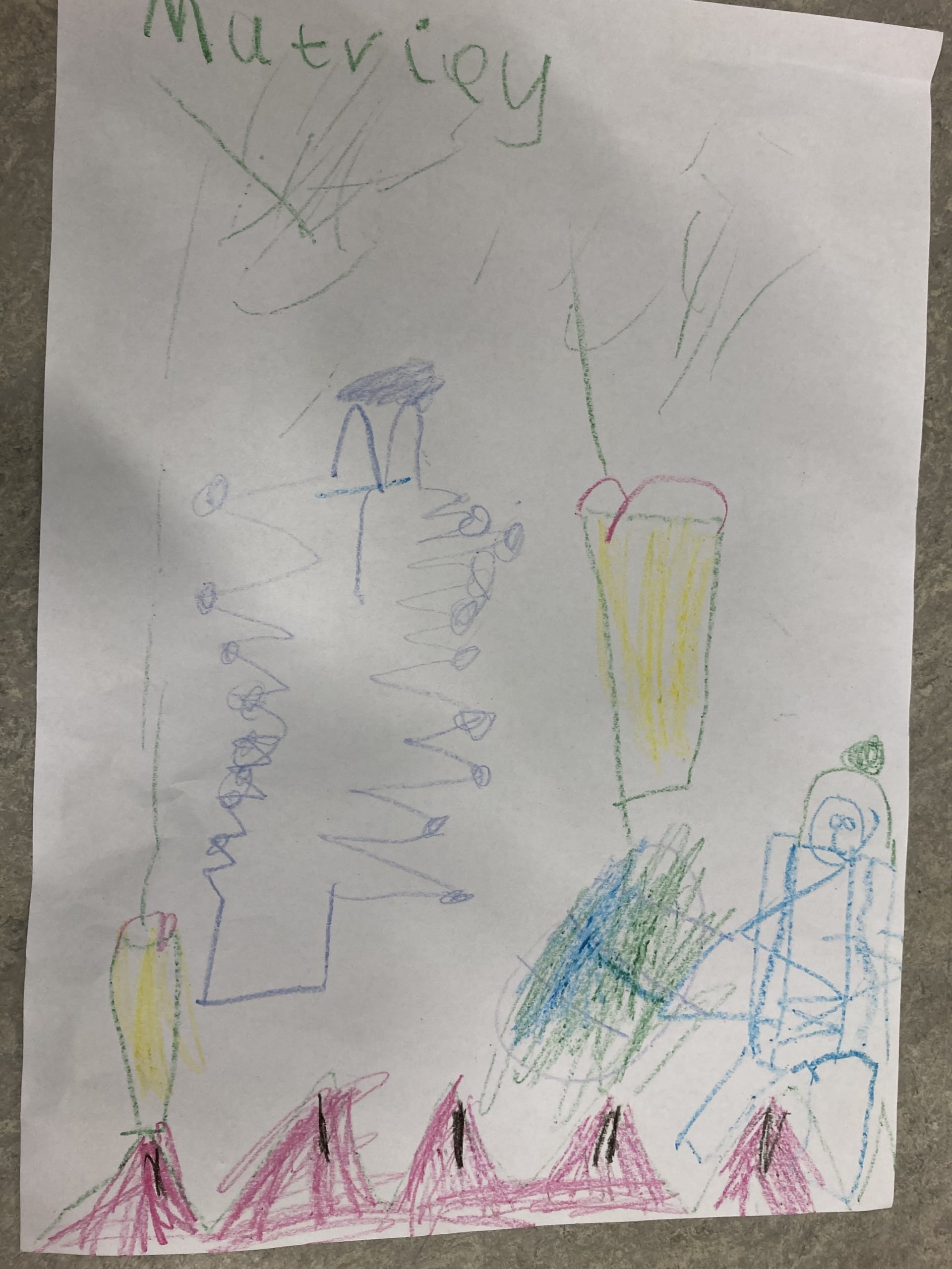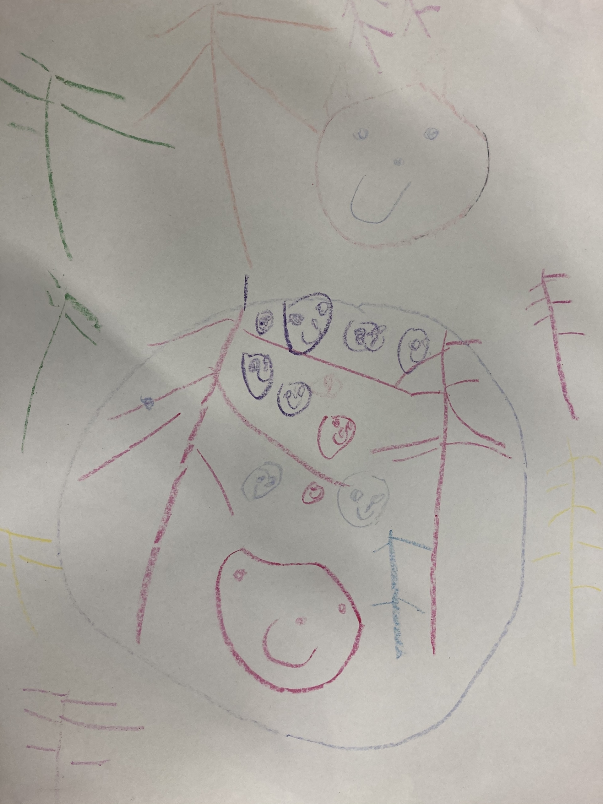 Magic ball, when we were all spinning round and made a snowman and stuff. That’s the snowman in the forest. My favourite thing was interacting with other people cause I don’t get the chance to do that much and it was good for her too.