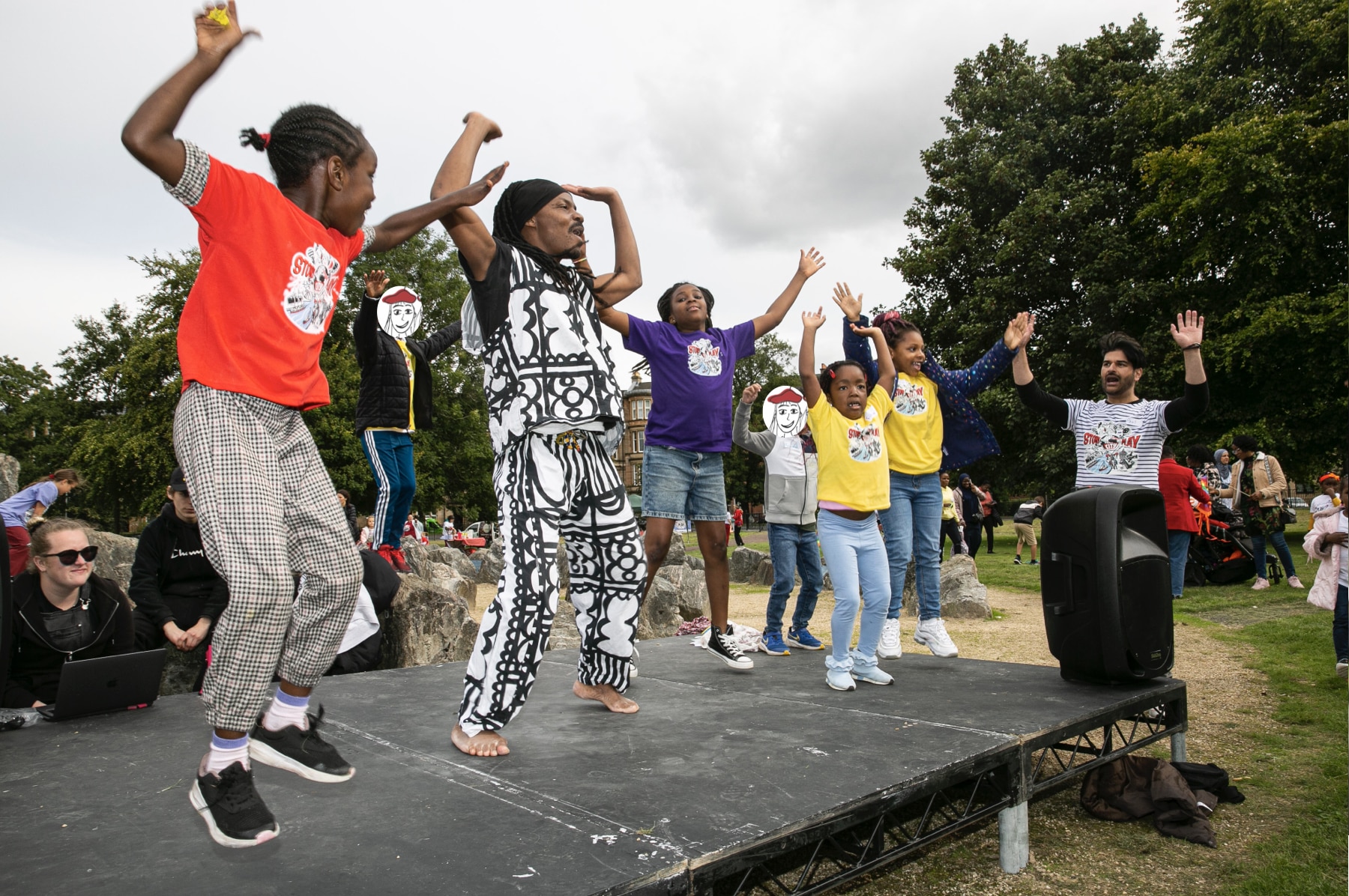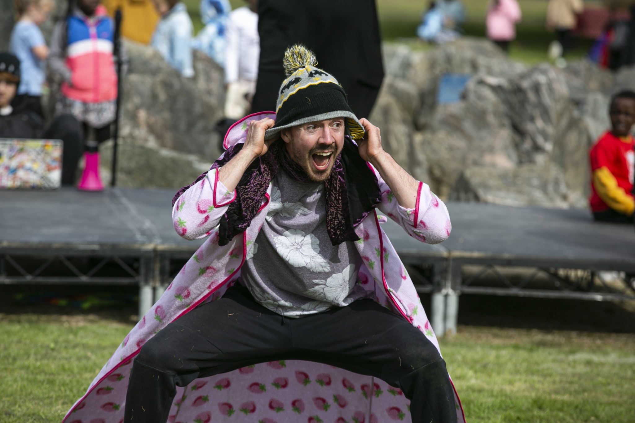 At 11.30 everyone had arrived, and we were ready to begin. Virginia, Ruby and our Licketyspit Ambassador, Zainab Adeleye welcomed everyone to the festival and warmed us all up with a great big Grandma Grandma! Then one by one the Lickety hubs stood up on the stage and presented their group!