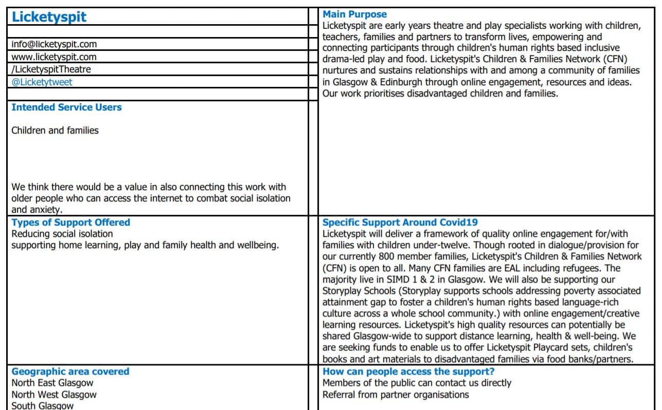 Useful directory of all the services provided by organisations, community groups and charities in Glasgow, so we can all help each other through the Coronavirus outbreak.