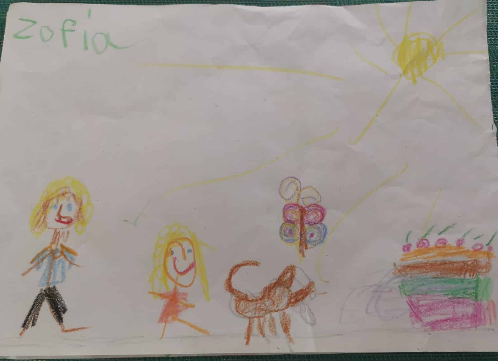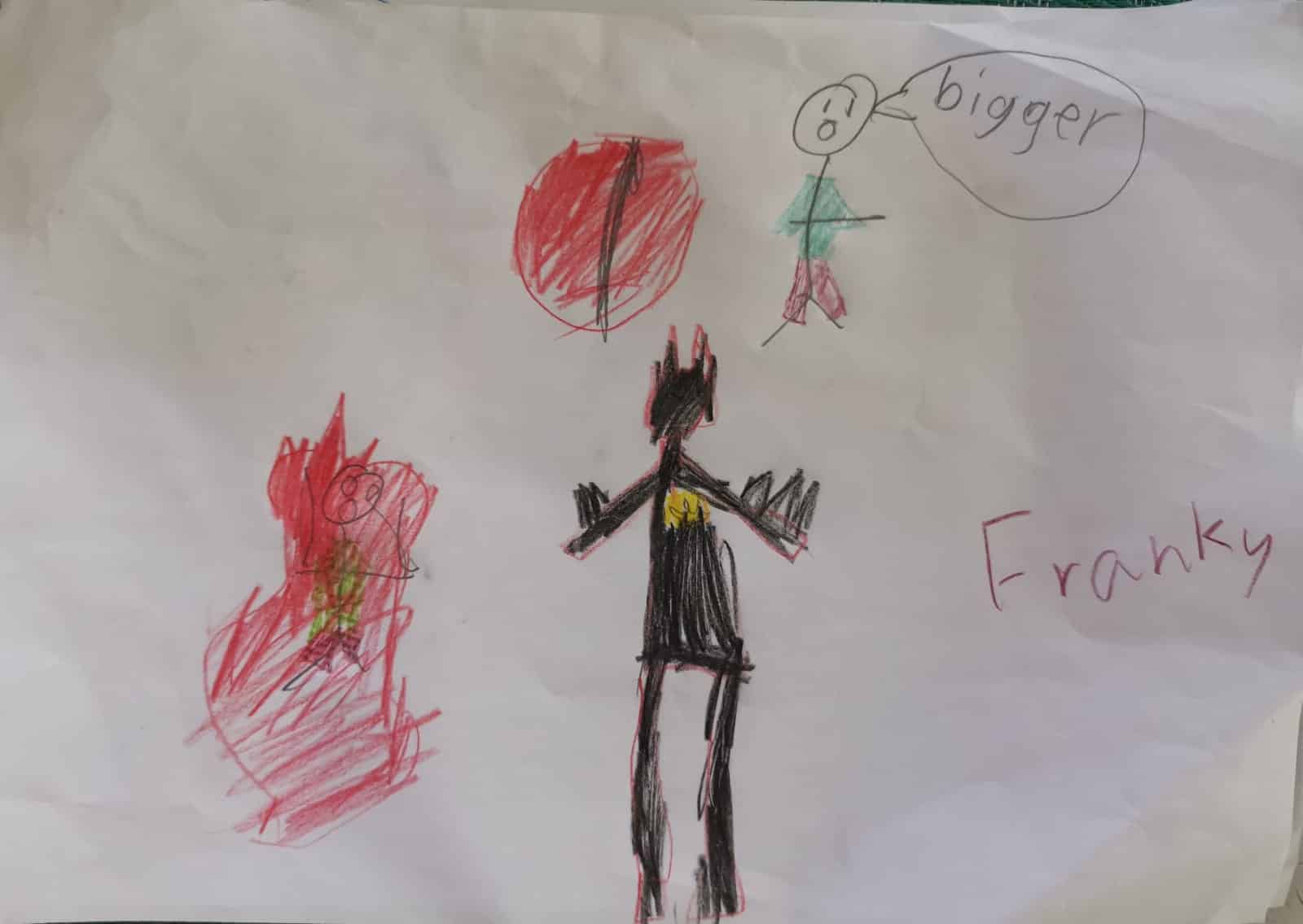 ‘My name is wonder woman, I live in the secret headquarters and my favourite food is cake!!’ – Felicia