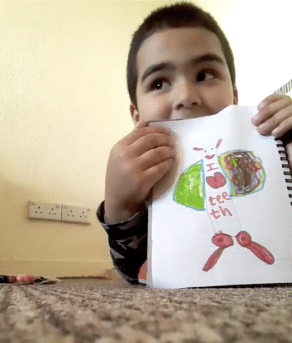 we landed on the longest beach we’d seen in our whole life! A flock of seagulls appeared out of nowhere and pecked at our feet! Shoo! Felicia spoke in Seagull language to get them to fly away! ‘Caw caw!’ She cried as we ran and ran until we jumped in the sea – it was lovely and calm, yippee! But as we swam deeper, water filling our wellies, the sea began to turn into JELLY! Karmen said it tasted like strawberry, Brooke said it tasted like lemons and Lily said hers tasted like watermelons! Out popped the JELLY LADY who told us that we musn’t eat the jelly… we must WEAR the jelly! So we made jelly hats, and jelly dresses, jelly trousers and socks! But before she disappeared she told us that the only way to escape the jelly was… to eat our way out!! Luckily the tooth fairy’s brother was there (Lawand), who recruited all of his toothless friends to help us! Chomp chomp chomp… DEELICIOUS!