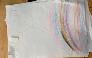 ‘made Castlemike with lots of rainbows, and I was in my ballon, but it popped.’
