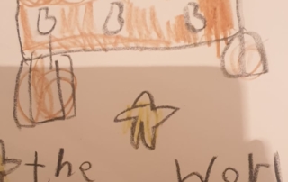 ‘My mum is flying the balloon. There was a storm, and the balloon fell (but was okay).’
