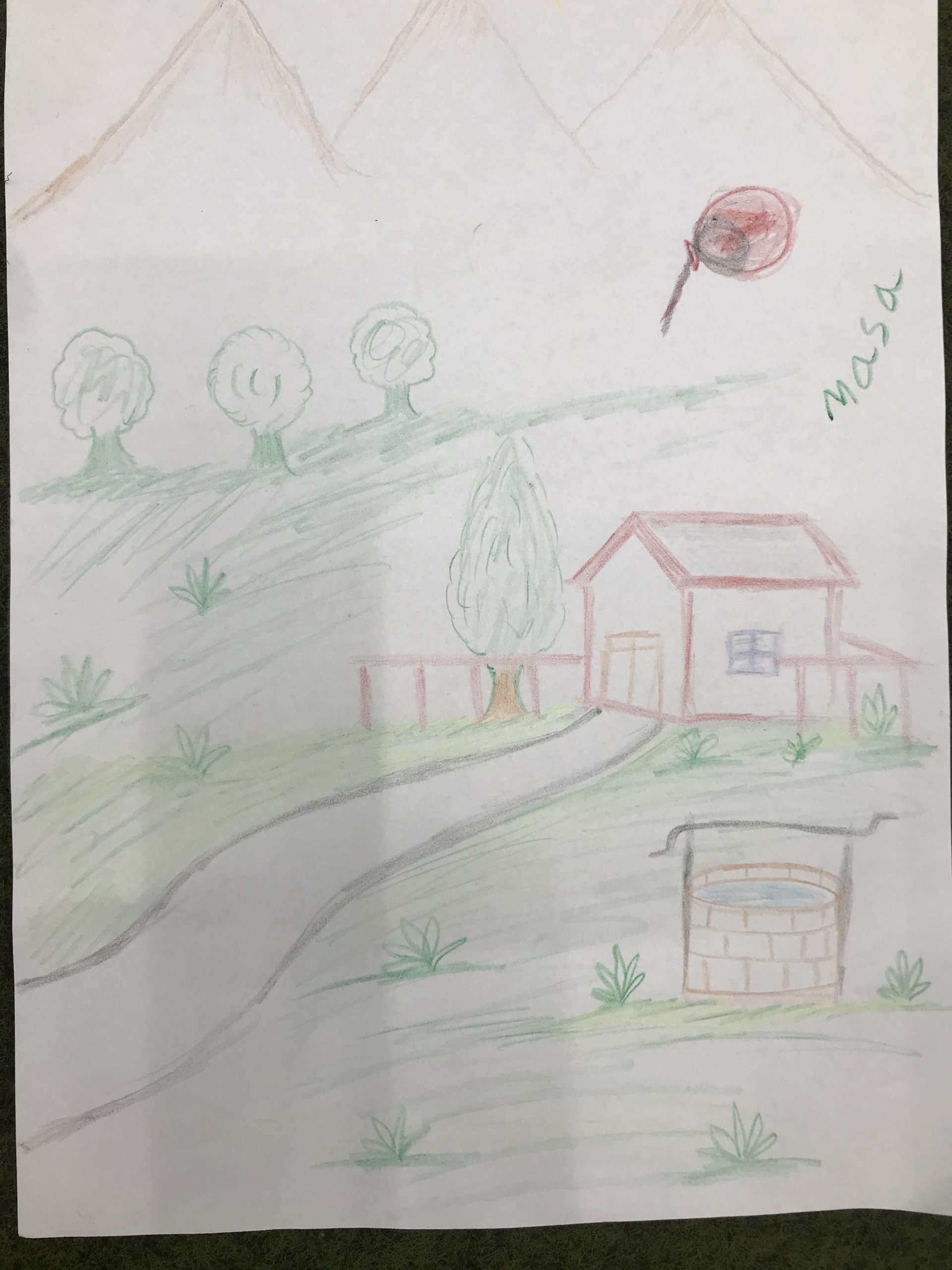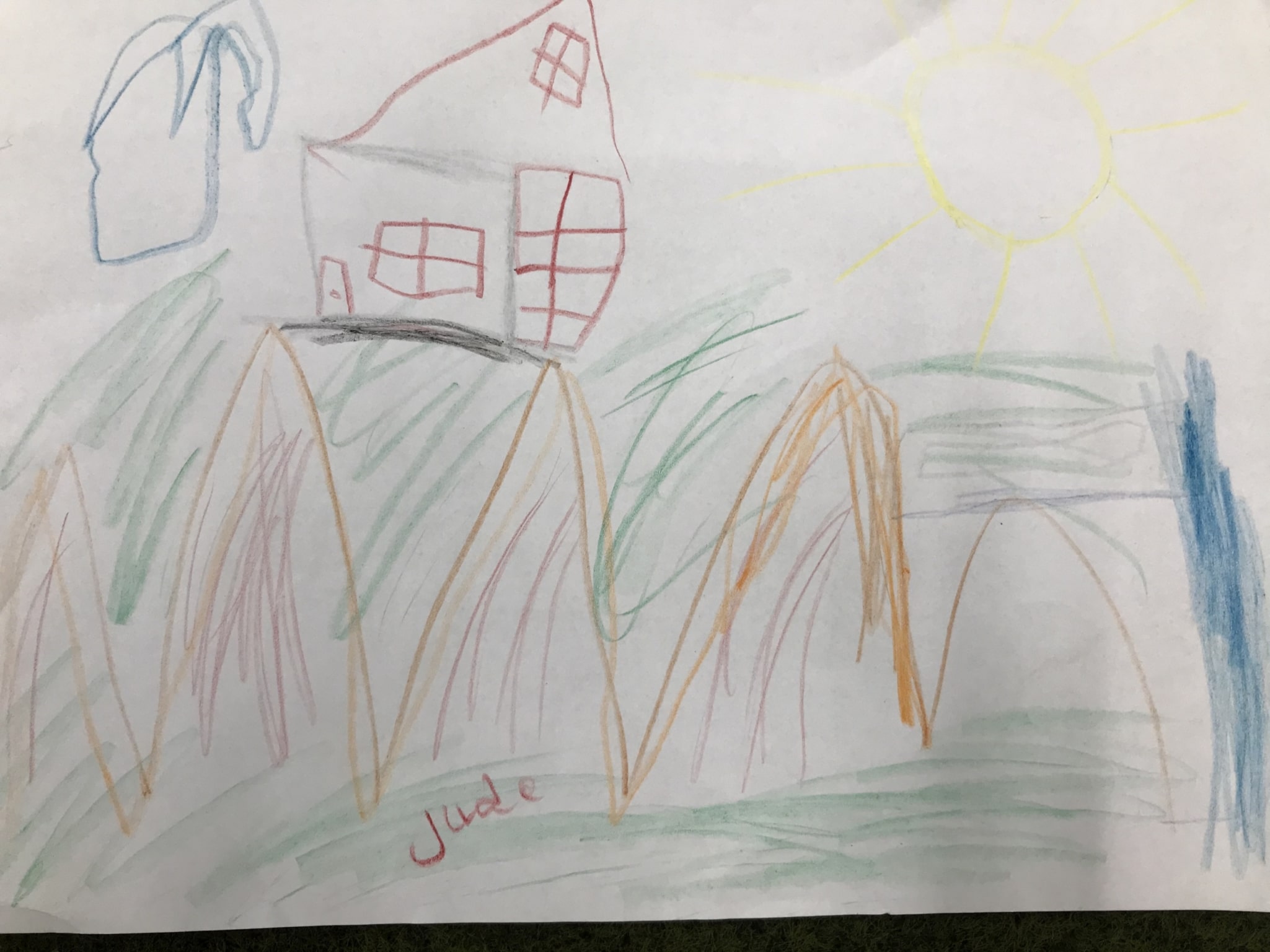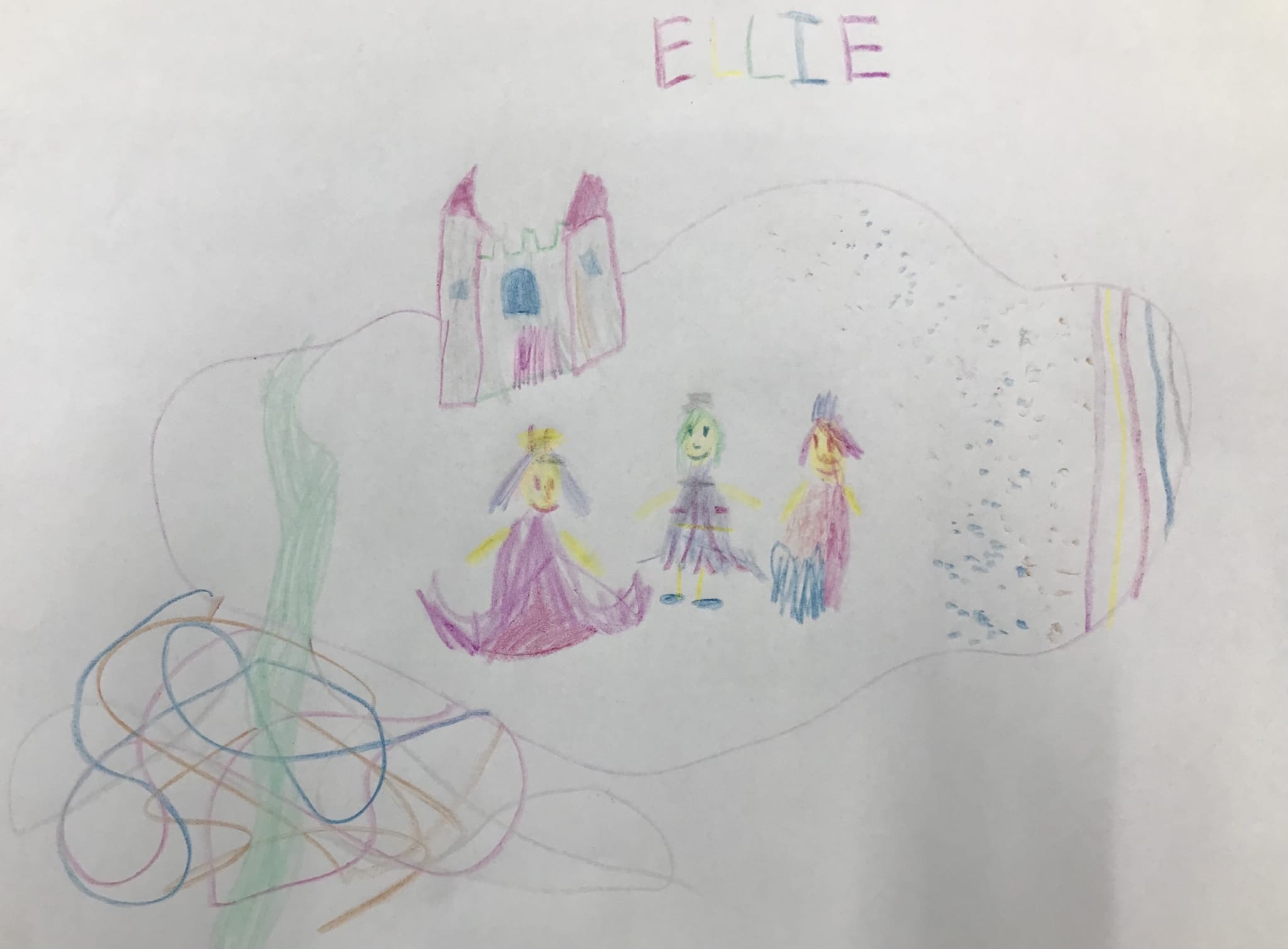 Ellie did a picture of where she lives and a castle with magic wands that can be cut up to make little ones. She felt excited.