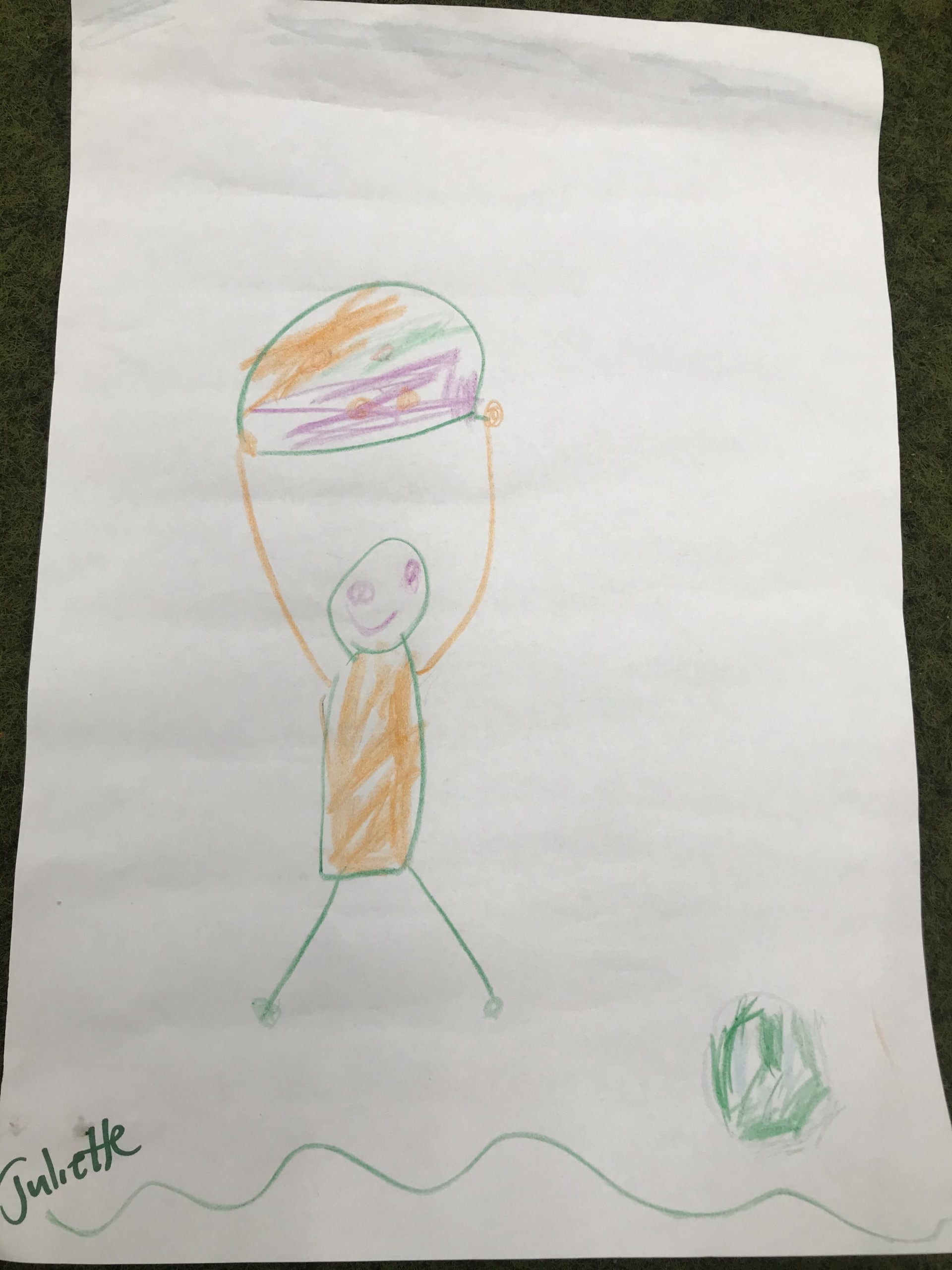 Hunter did a picture of Mum’s eyeball and he liked the orange balloon that popped.