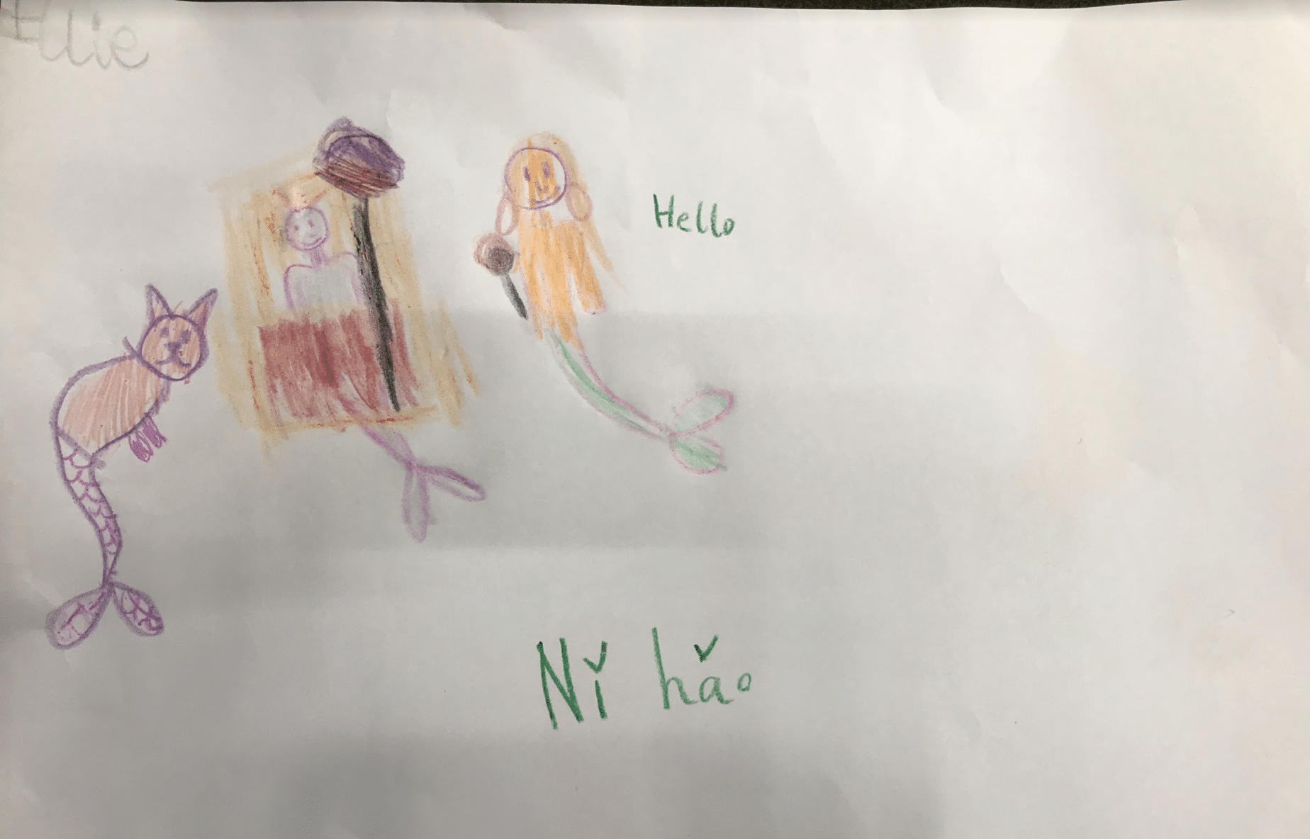 We discovered that Ellie was living in a copper castle which we all swam to and on the way we saw sharks and jellyfish.