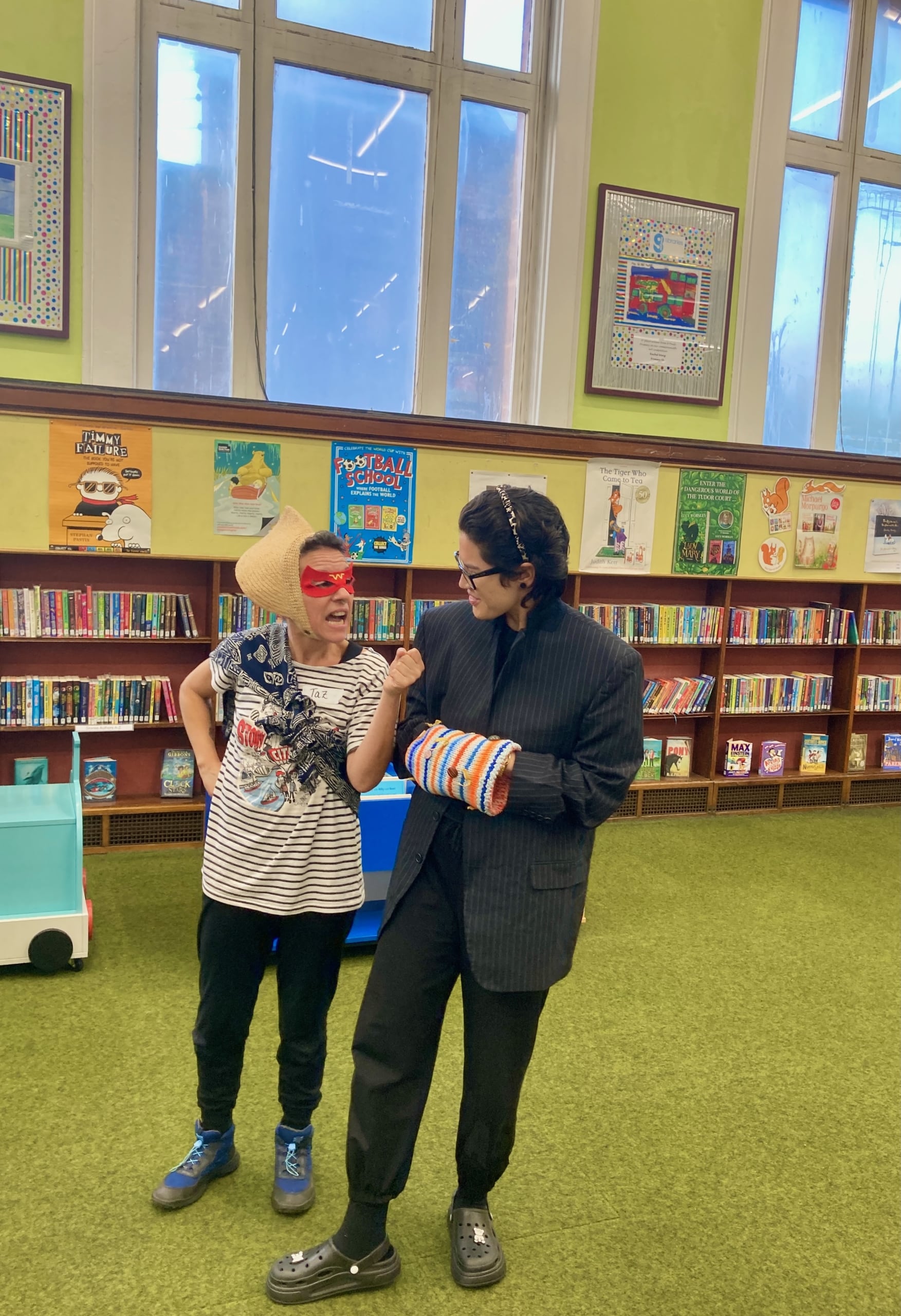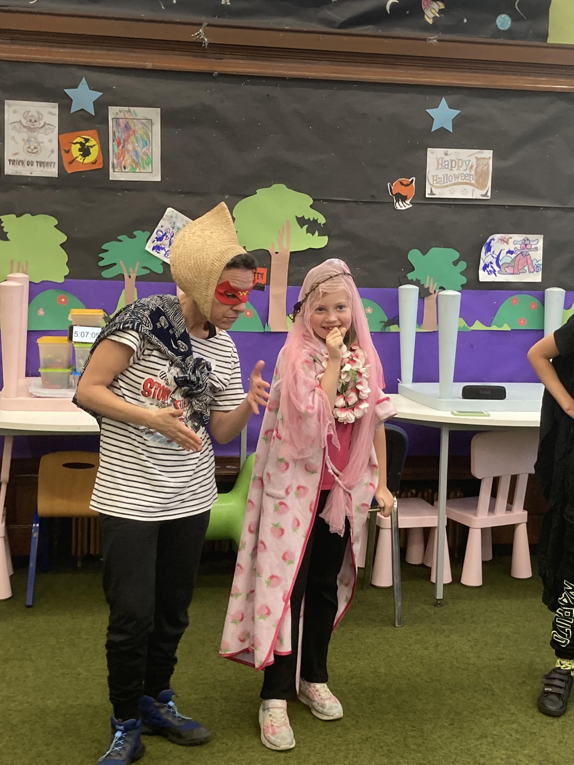 Taz was Ninja Granny and lived in an old shoe, Nina was a Granny who lived in a chocolate house, watches TV and likes to dance! Freddy was Fairy Granny who lives in a big,big,big,big blue shoe and invites friends over to play power rangers. She watches TV and her fave food is chocolate. Carmen was Granny Susan who constantly has cold hands!She lives in the North Pole also in an open plan shoe with her seal, Zofia was Granny Sweet who lived in a hut in Candyland and has a sweetie bunny pet. She lives in a house made of gumdrops and she runs a Sweet Bakery – and she gave out some of her treats! Frankie was Granny Skater who lives in a Skate Park and of course her favourite thing is to skate around! She even showed us one of her skating tricks!. Kevin became CandyStore Batman Granny who dances to the TV tune of Batman and lives in a big big house that is a shoe. She is friends with Batman and she knocks bad people out with shoes! And Cami was Granny Frank who lives in a helicopter and came to the Granny Convention to teach us all a song called Grandma,Grandma!