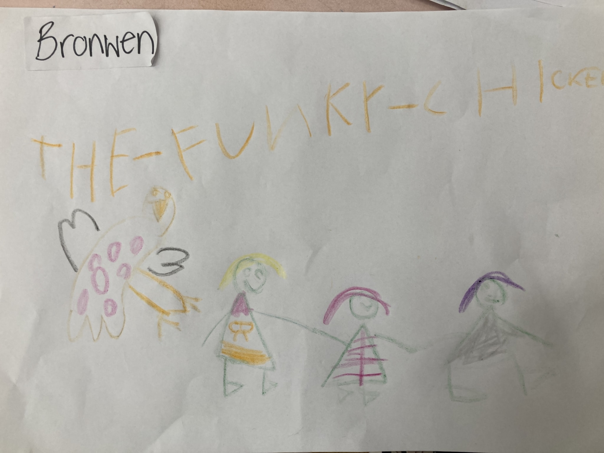 “I made a cake – with fish, rainbows, strawberries a stinky sock and marshmallows. Favourite part of the session today was the Funky Chicken”