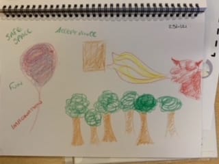 Storyplay is not as easy as it looks. Learning to facilitate it is to embark on a journey of learning, self-reflection and bold experiment! The WA workers all described a similar experience, initially feeling out of their comfort zone, nervous and self-conscious, then increasingly relaxing and gaining in confidence. ‘At the beginning of the sessions I felt really quite scared… But I think we’ve all just coped really well with it. It’s really nice to see everybody’s confidence growing’. WA Storyplay Trainee’21