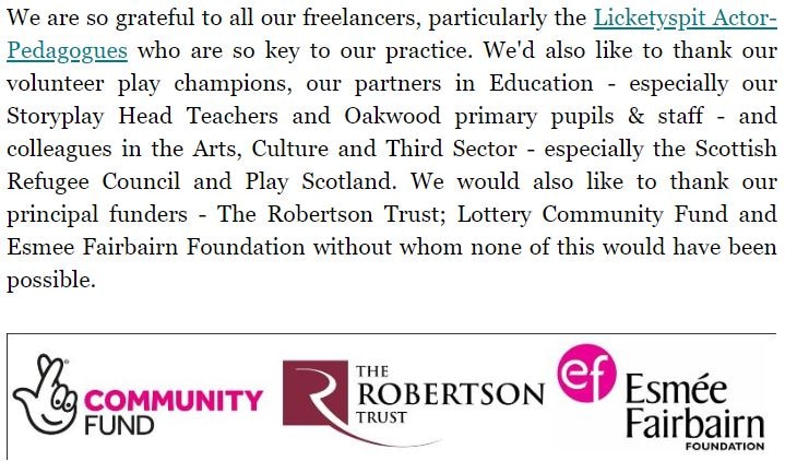 Storyplay Residency Year 3 at St Mary’s Primary, Maryhill (LicketyLeap, Porridge & Play, Playcard Play)